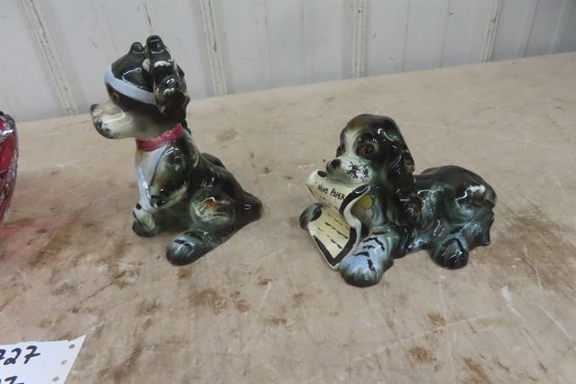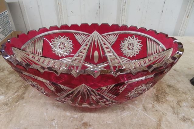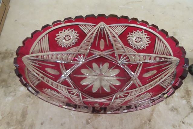 Cranberry Cresta Bowl + 2 Dog Ornaments