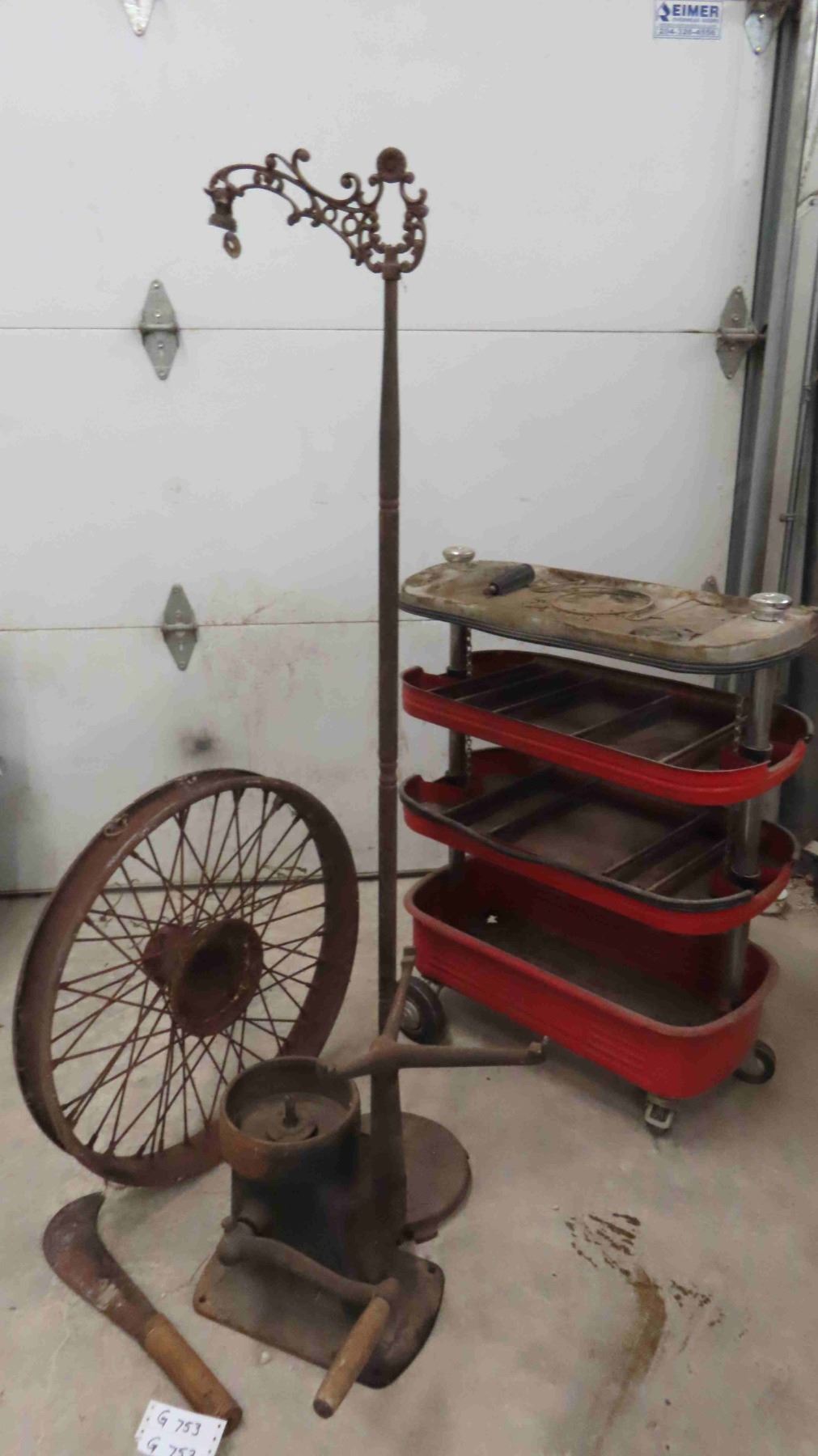 Cream Separator - Vintage, Pole Light, Metal Spoked Rim 24" Wide, Tool Tray on Casters, Machete