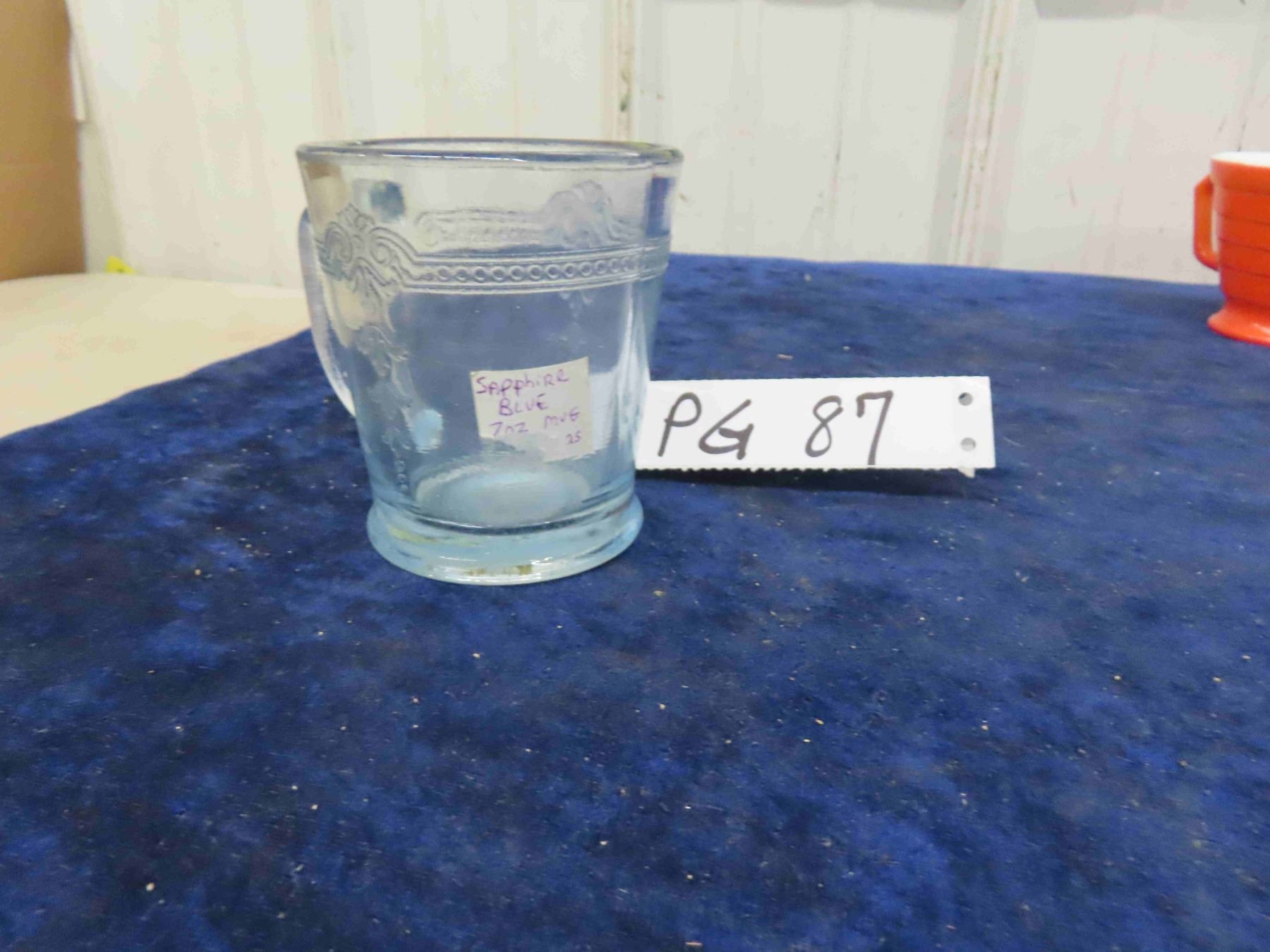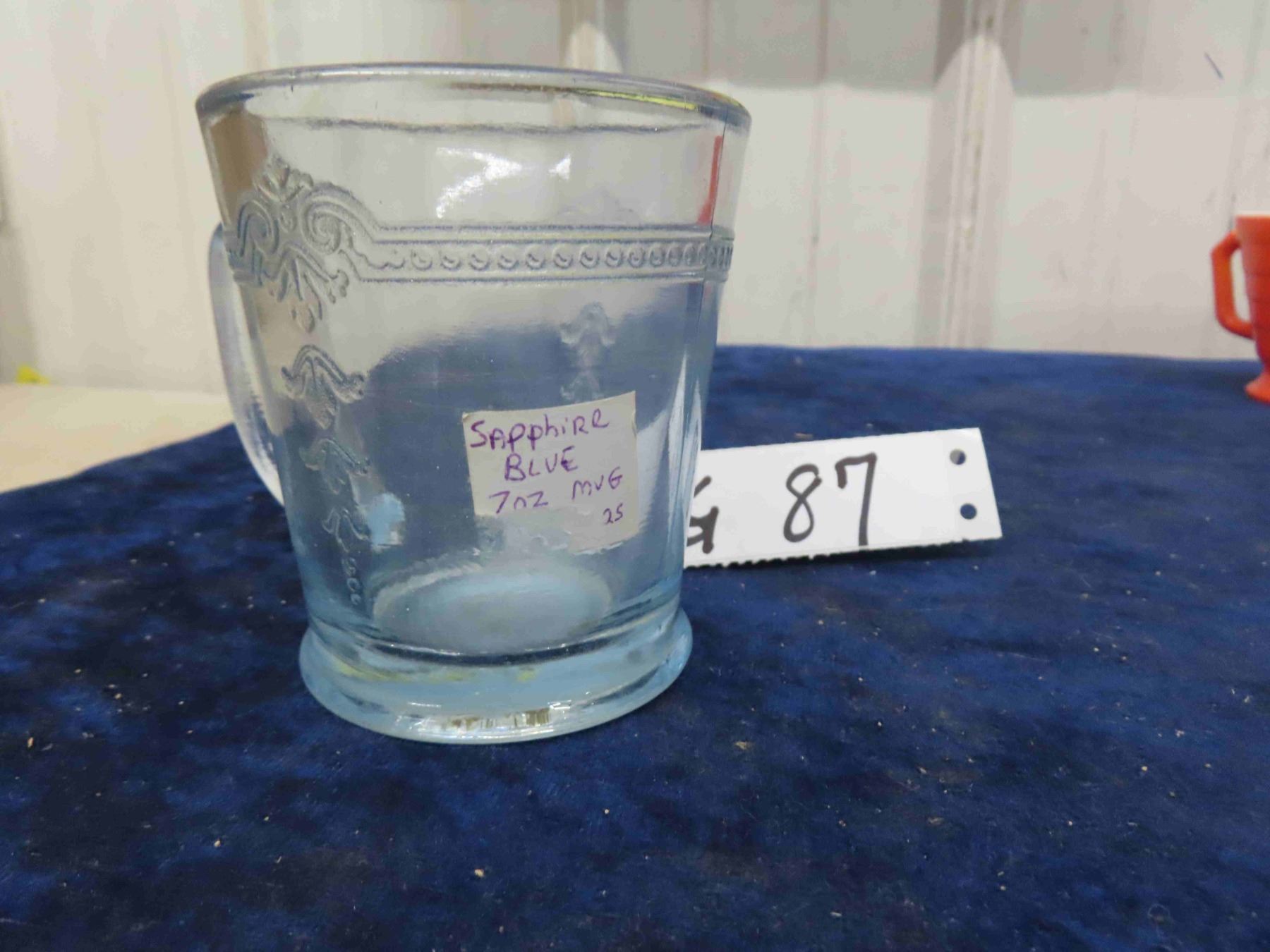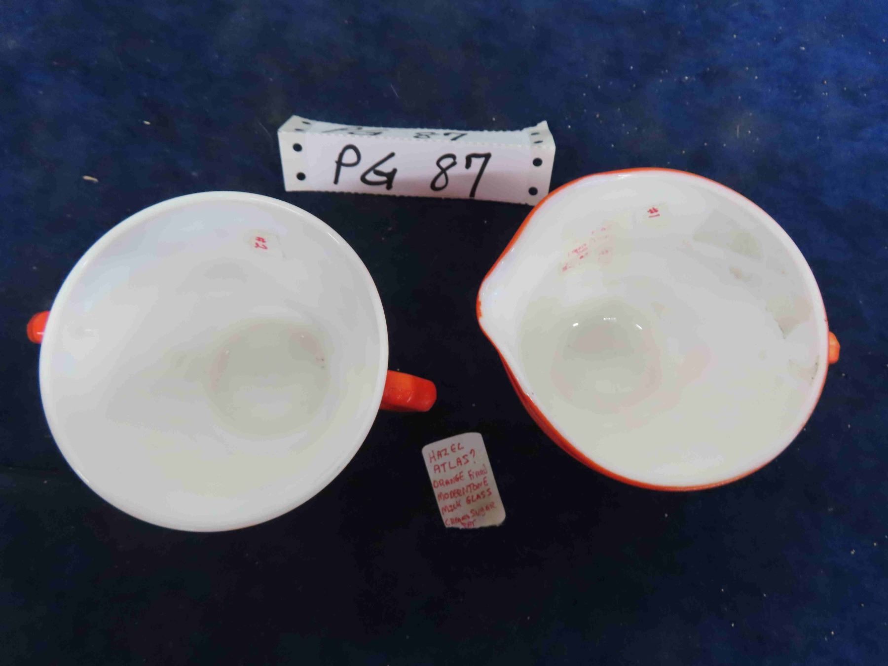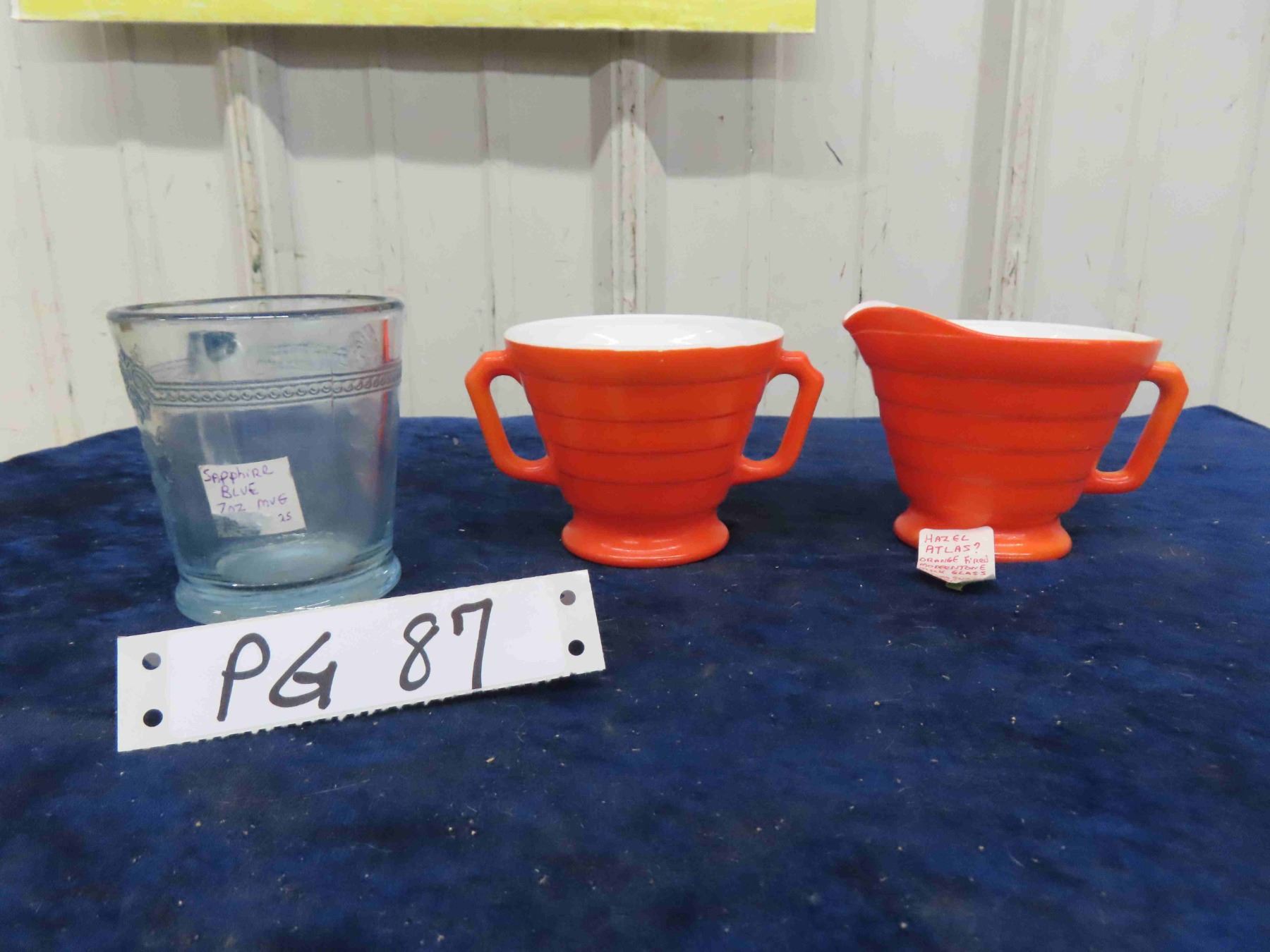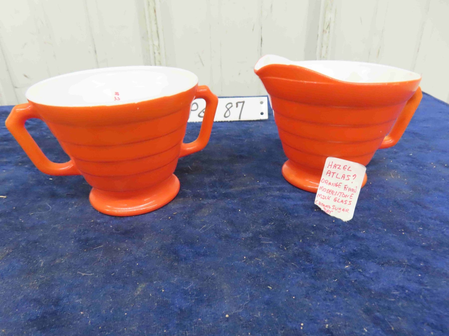 Creamer + Sugar : Orange Fired Modern Tone Milk Glass , Saphire Blue Mug