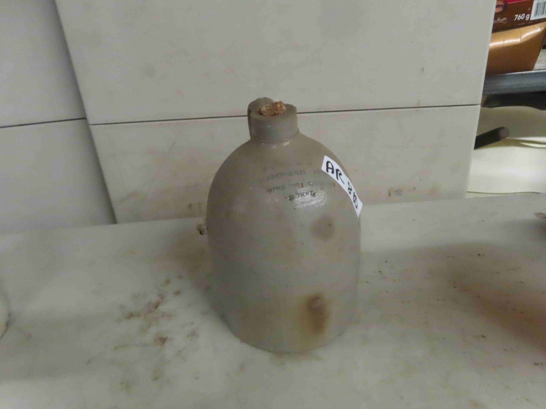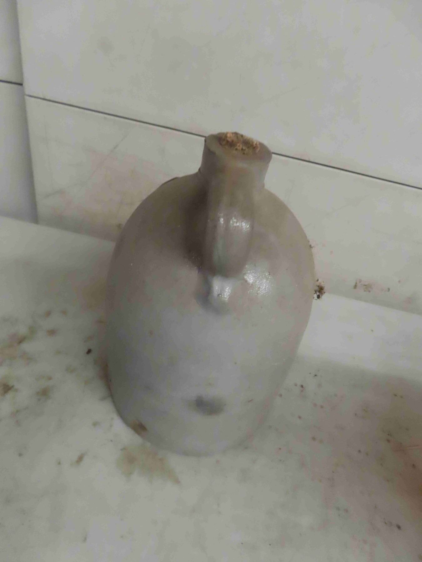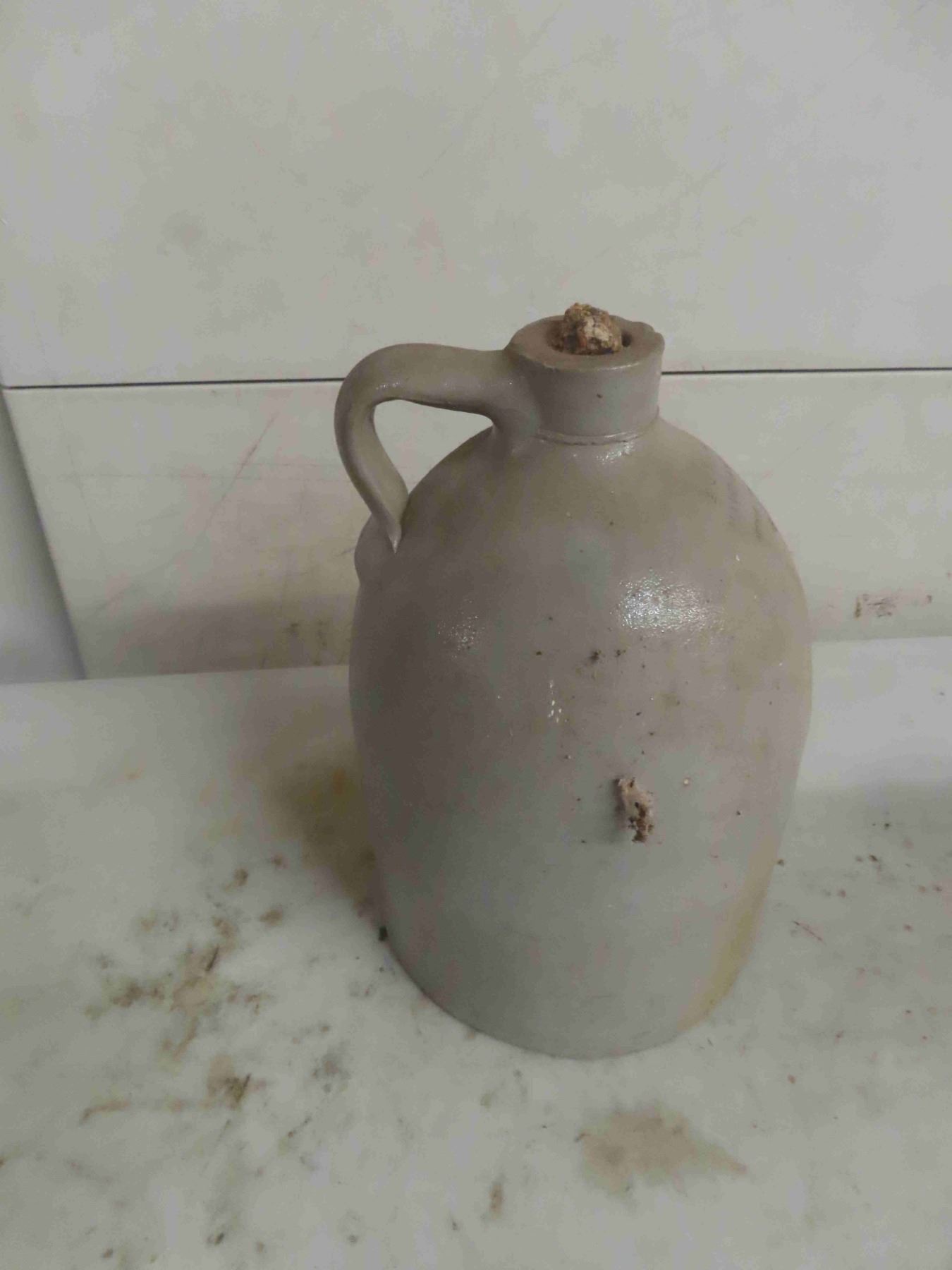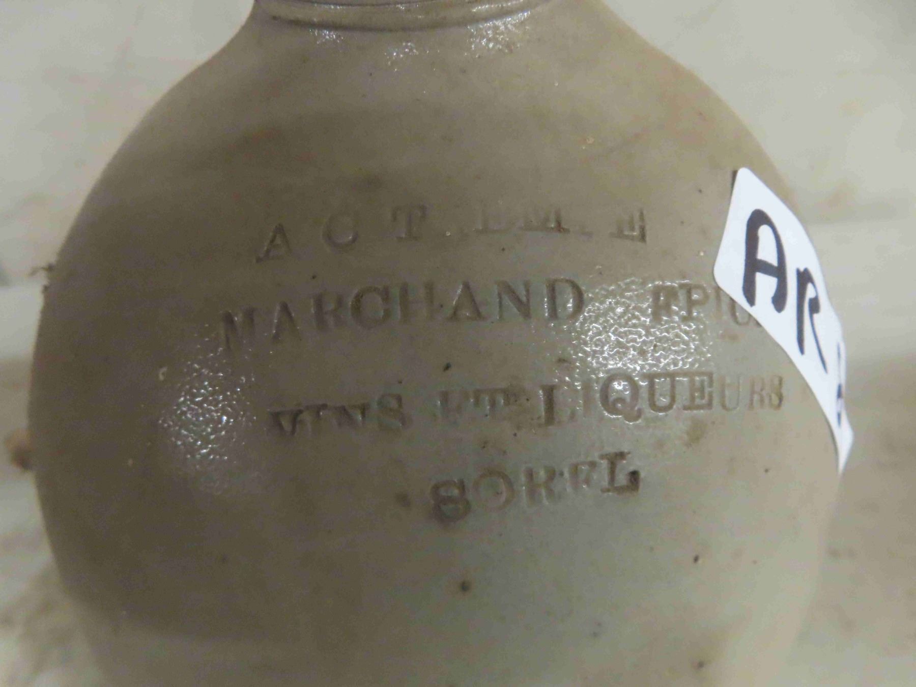Crockery Liquor Jug with Advertising - Marchand Pickle