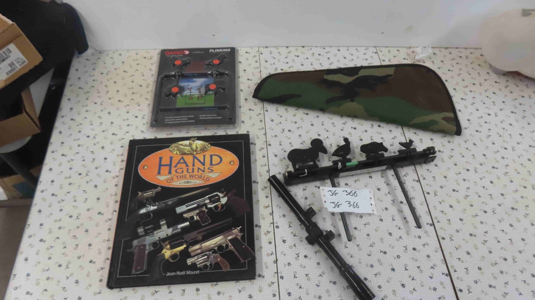 Crossman Airguns Model 538 Airgun Silhouette Target System, Plinking Air Gun Pellet Target, Crossman 4x15 Rifle Scope, Soft Gun Case, 'Handguns of the World' Book