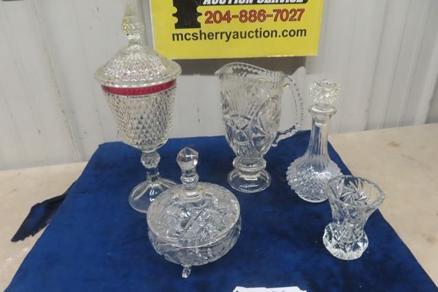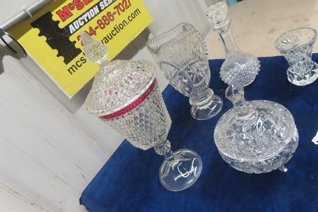 Crystal + Cut Glass ; Covered Dish, Pitcher, Decanter, Vase