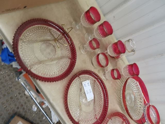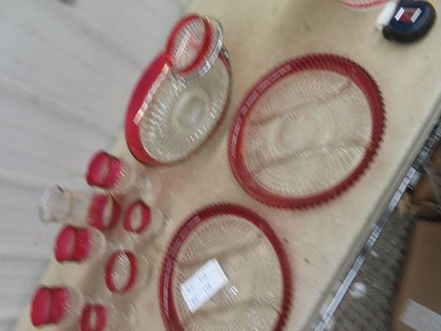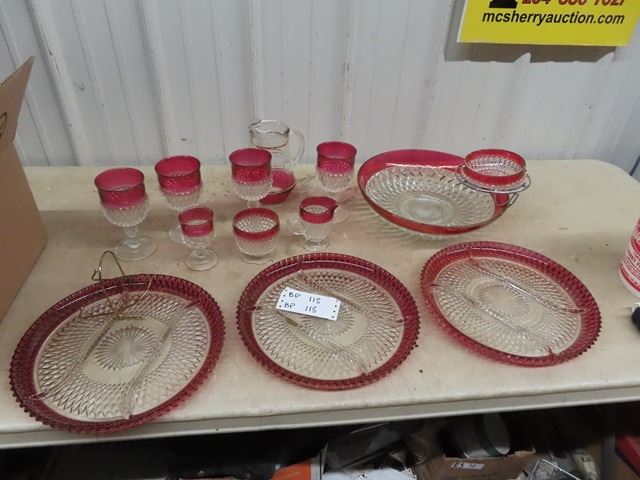Crystal Ruby Glassware , Pitcher , Trays Plus More!