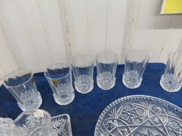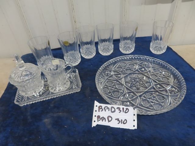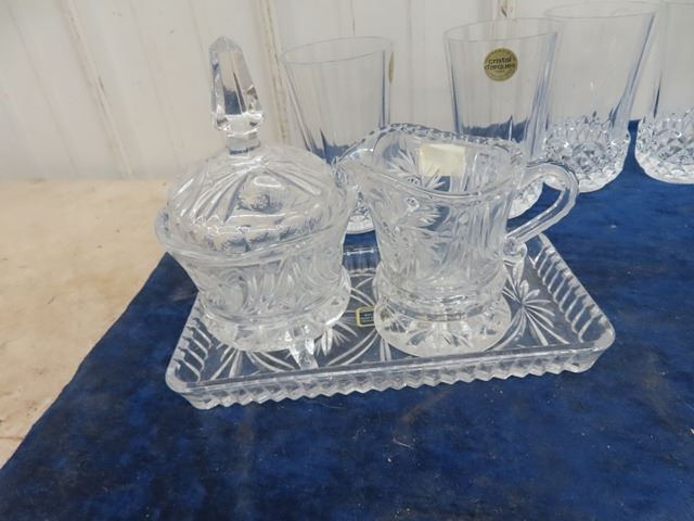 Crystal Tray, Cream + Sugar Pair & Glasses