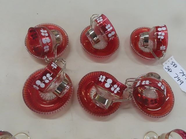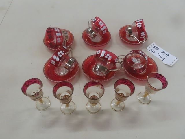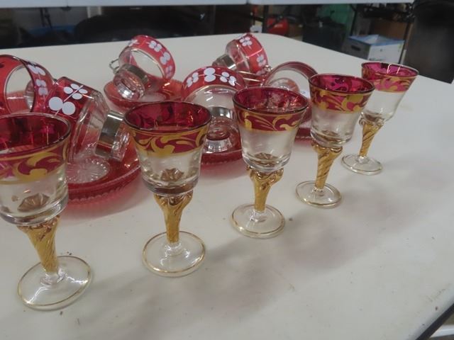 Cups, Saucers, Shot Glasses; Ruby Crystal