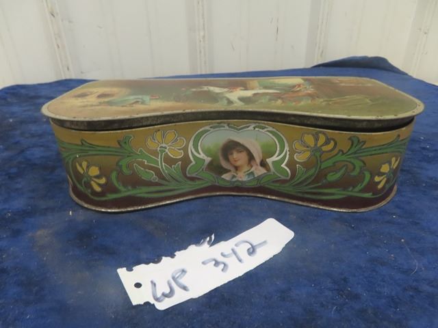 D.S Perrin + Company MFG High Class Biscuit + Candy Container London Canada- Nice Lithograph 10" x 5" x 2.5"