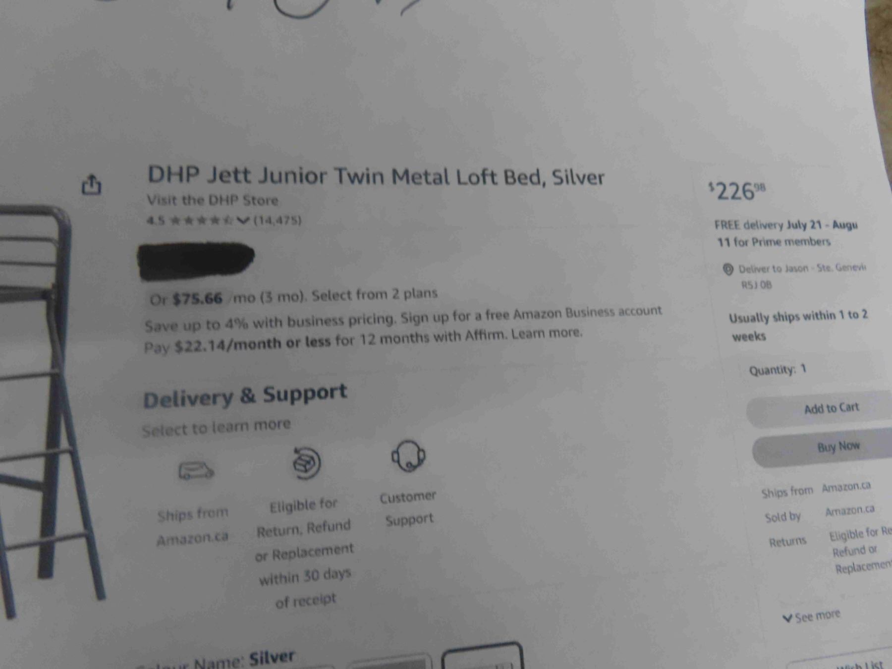 DHP Jett Junior Twin Metal Loft Bed Silver