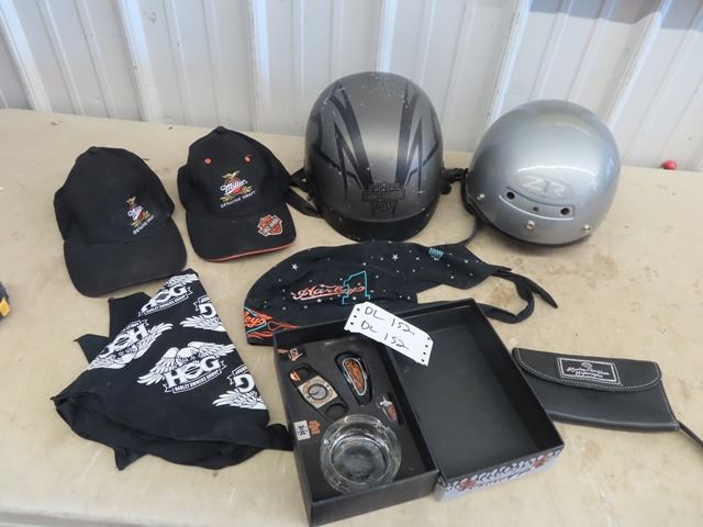 (DL) Harley Davidson Motorcycle Helmet, Head Wraps, Hats, Wallet, Plus More!