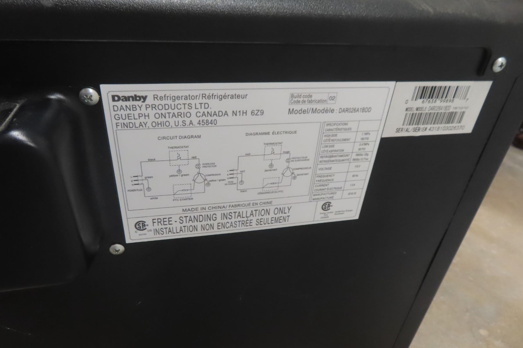 Danby Bar Fridge 27'' x 18'' x 18''