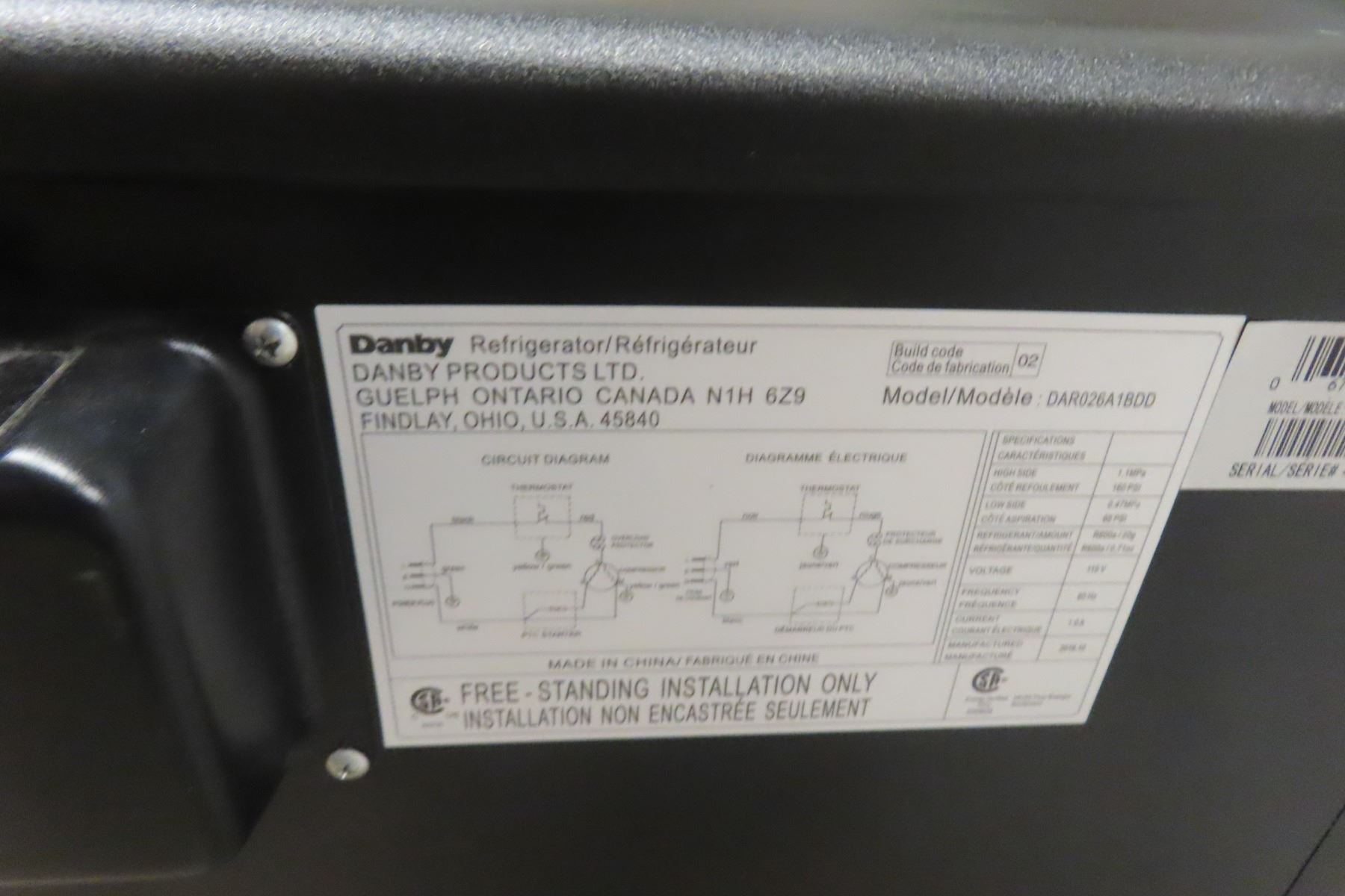 Danby Bar Fridge 27'' x 18'' x 18''