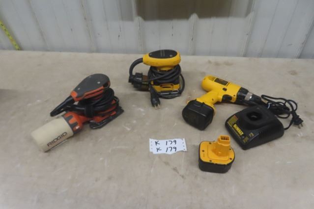 DeWalt 12V Drill with 2 Batteries & DeWalt + Rigid (with charger)  Power Sanders