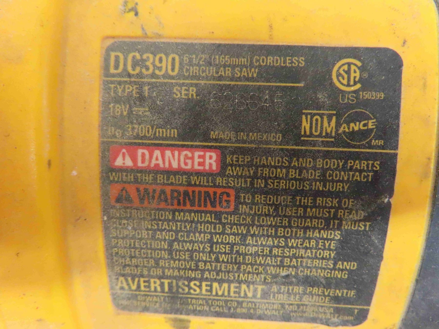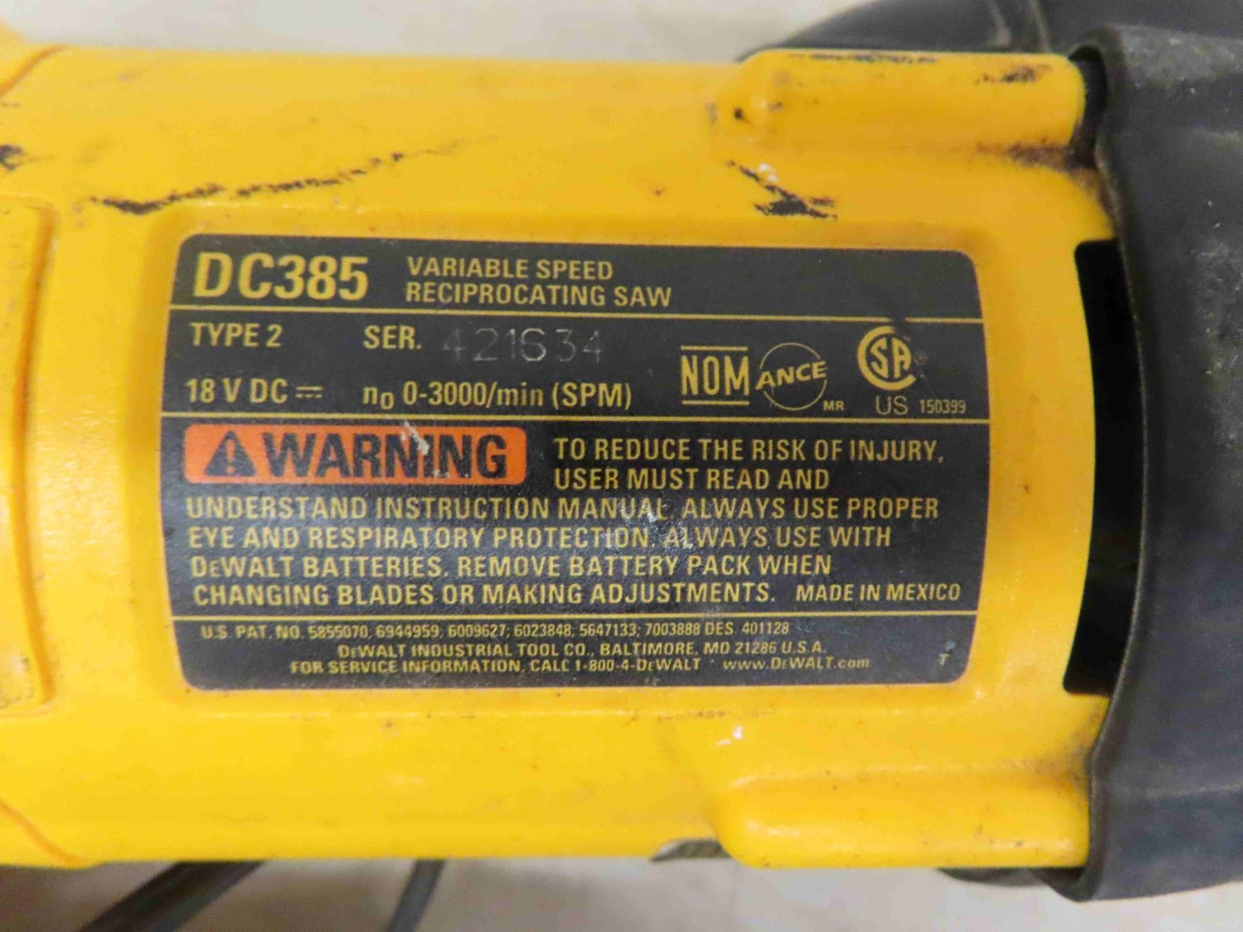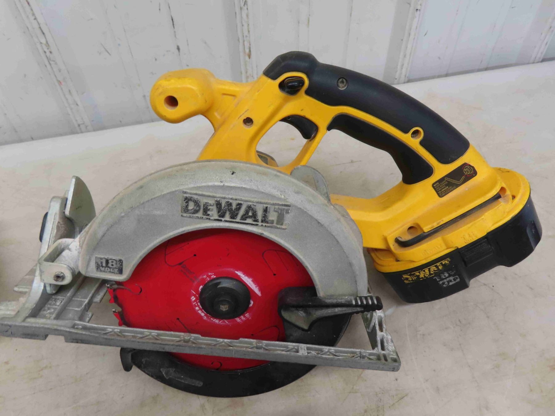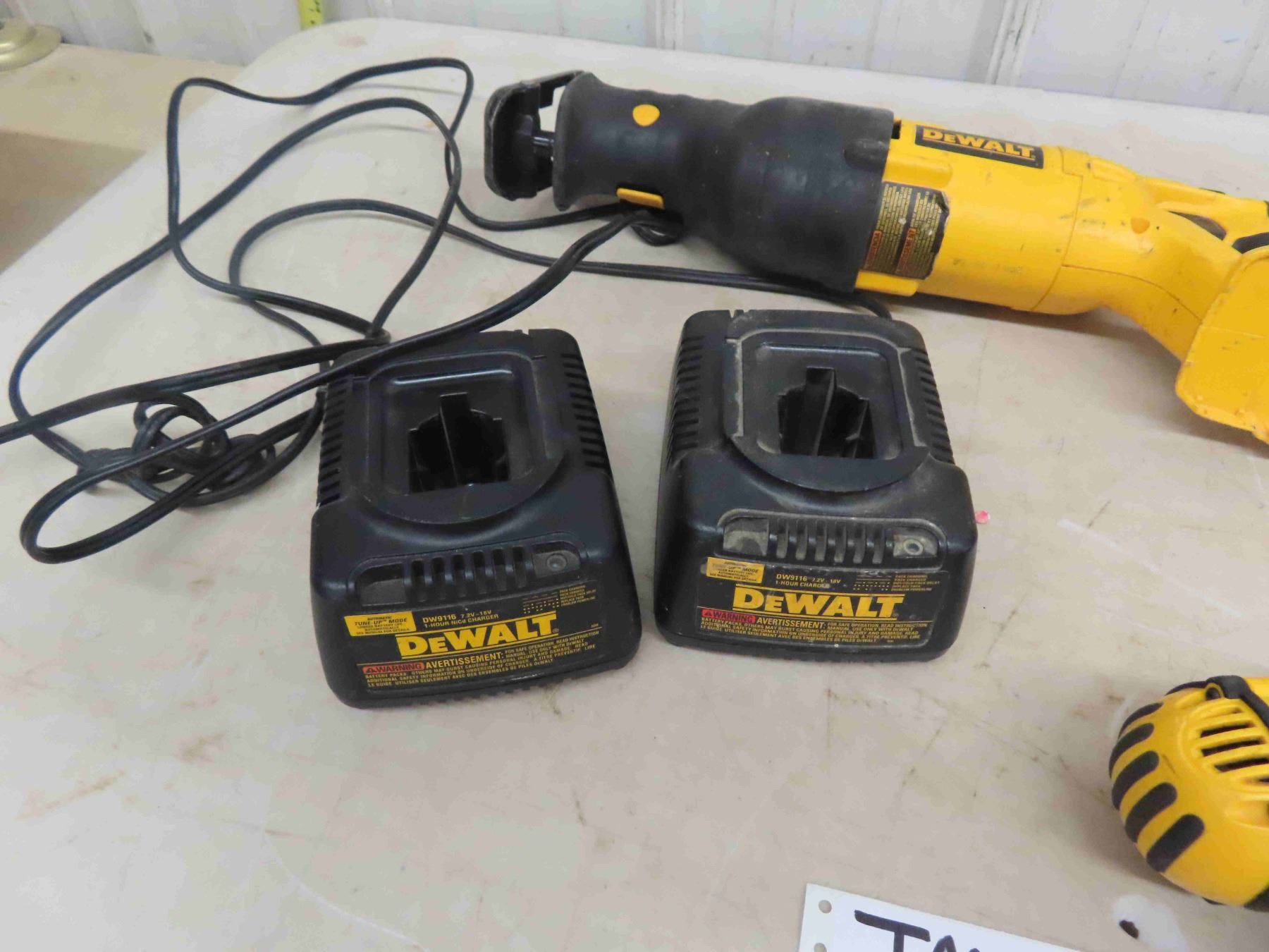 DeWalt 18V Cordless Tools; Circular Saw, Reciprocating Saw, 1/2" Drill, Flashlight, with 2 Chargers + 1 Battery - Owners says they work but need battery