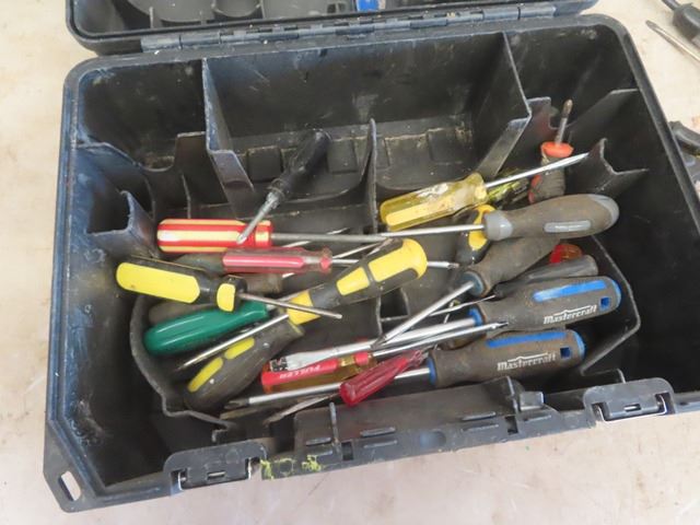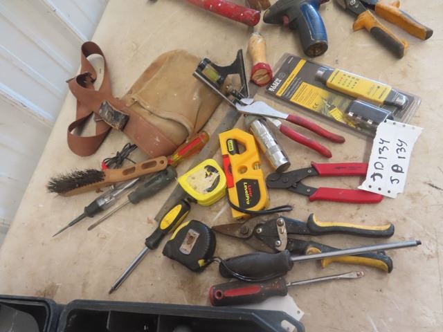 DeWalt Case Full of Odds n Ends of Hand Tools; Screwdrivers, Hammers, Tin Snips, Tape Measure, Tester plus more