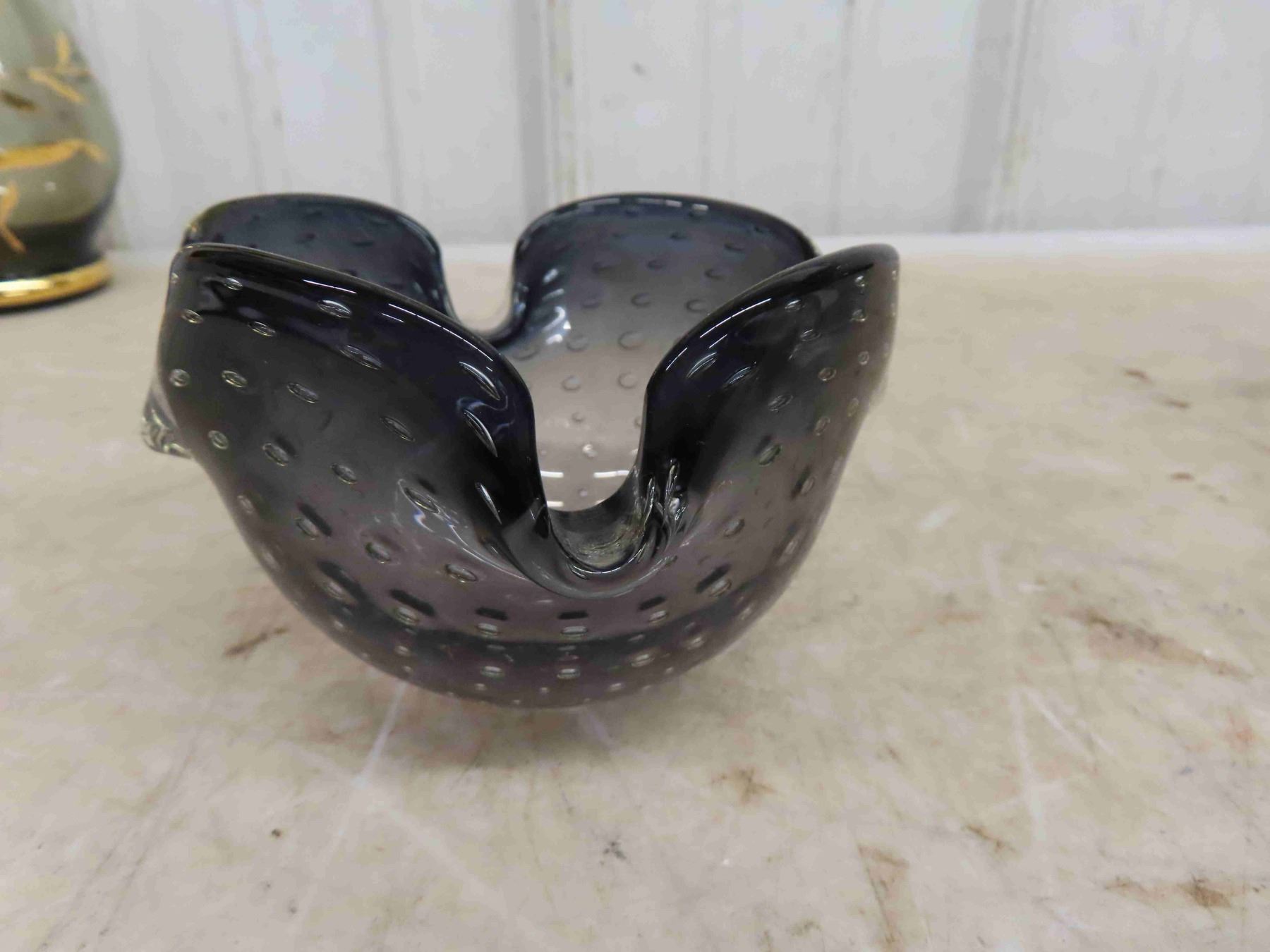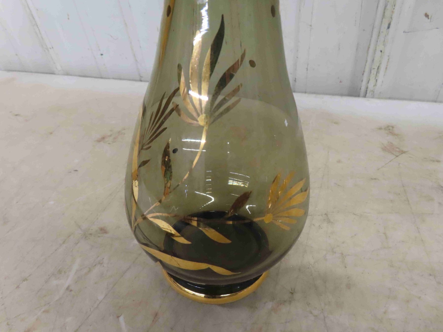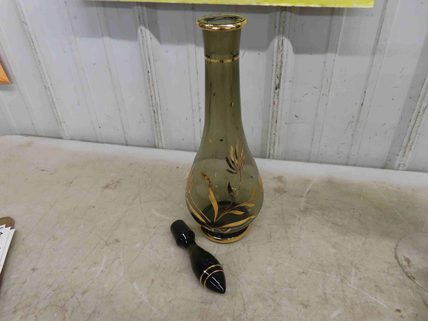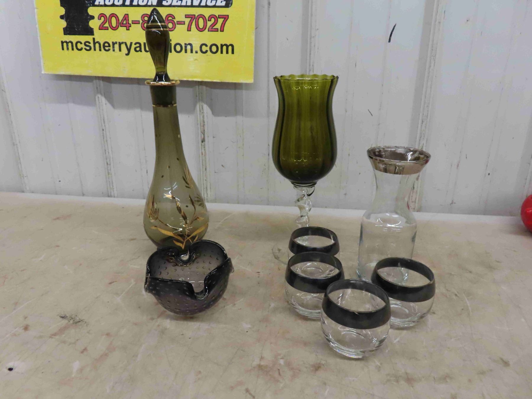 Decanter with Gold Trim , Art Glass , Craft with 4 Glasses