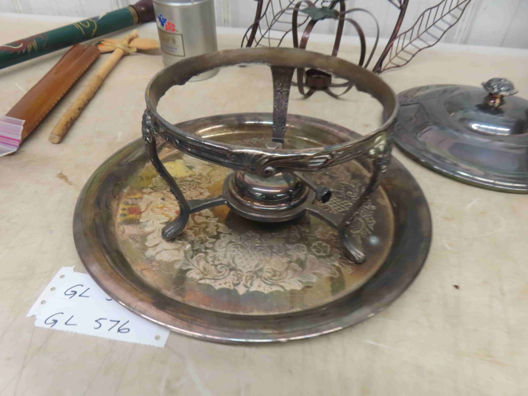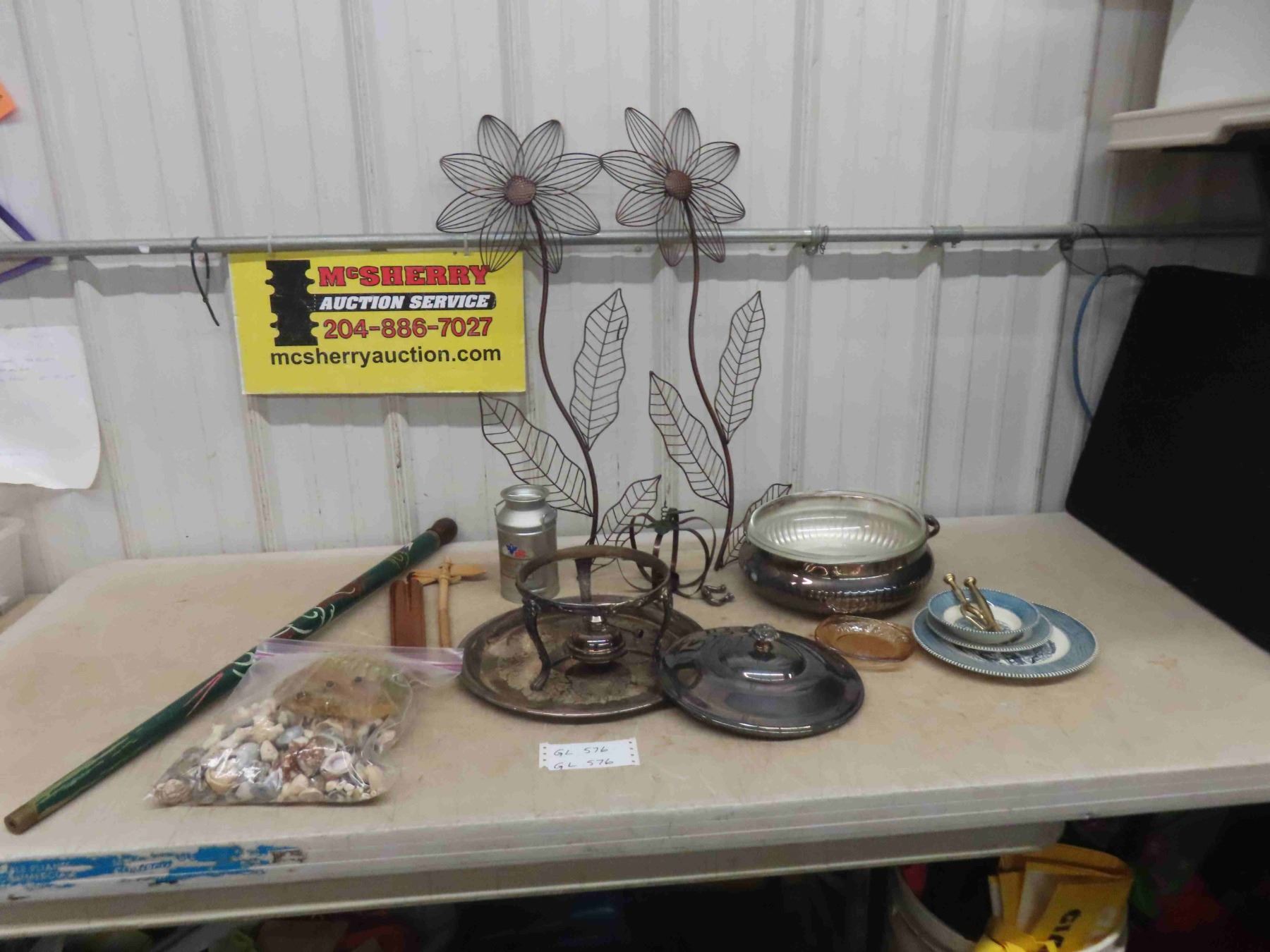 Decorative (2) Metal Flowers, Seashells, 3 Tier Candy Plate, Silver Plated Serving Ware, plus more
