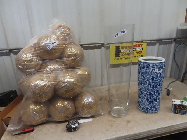 Decorative Balls & 2 Vases; 1) 17.5" , 1) 27.5"