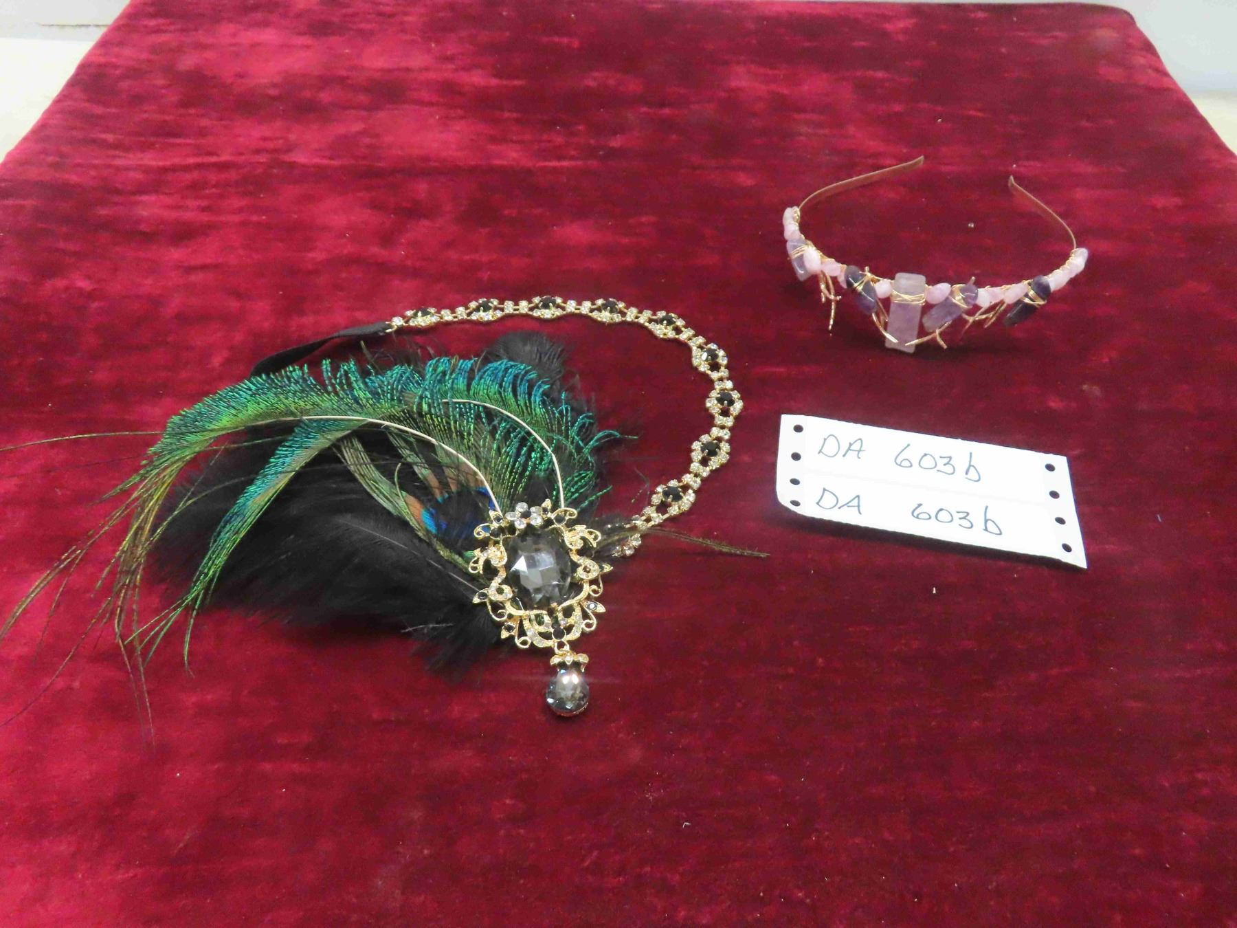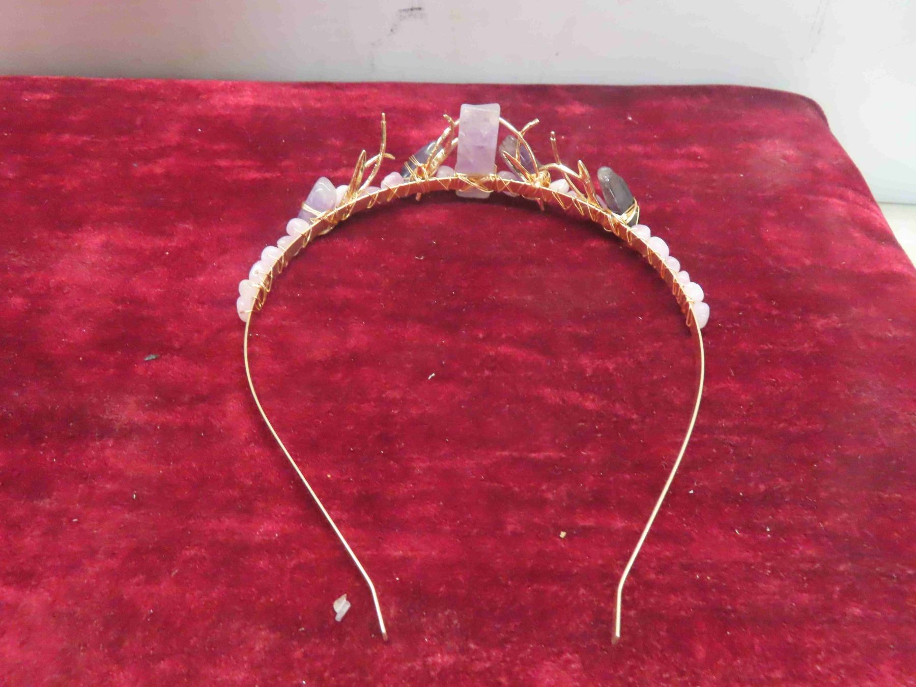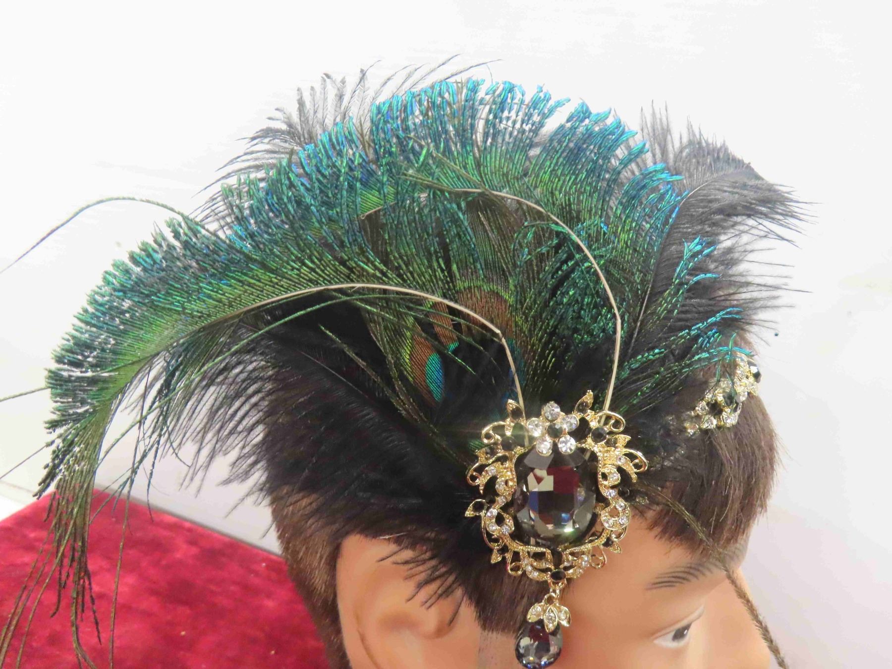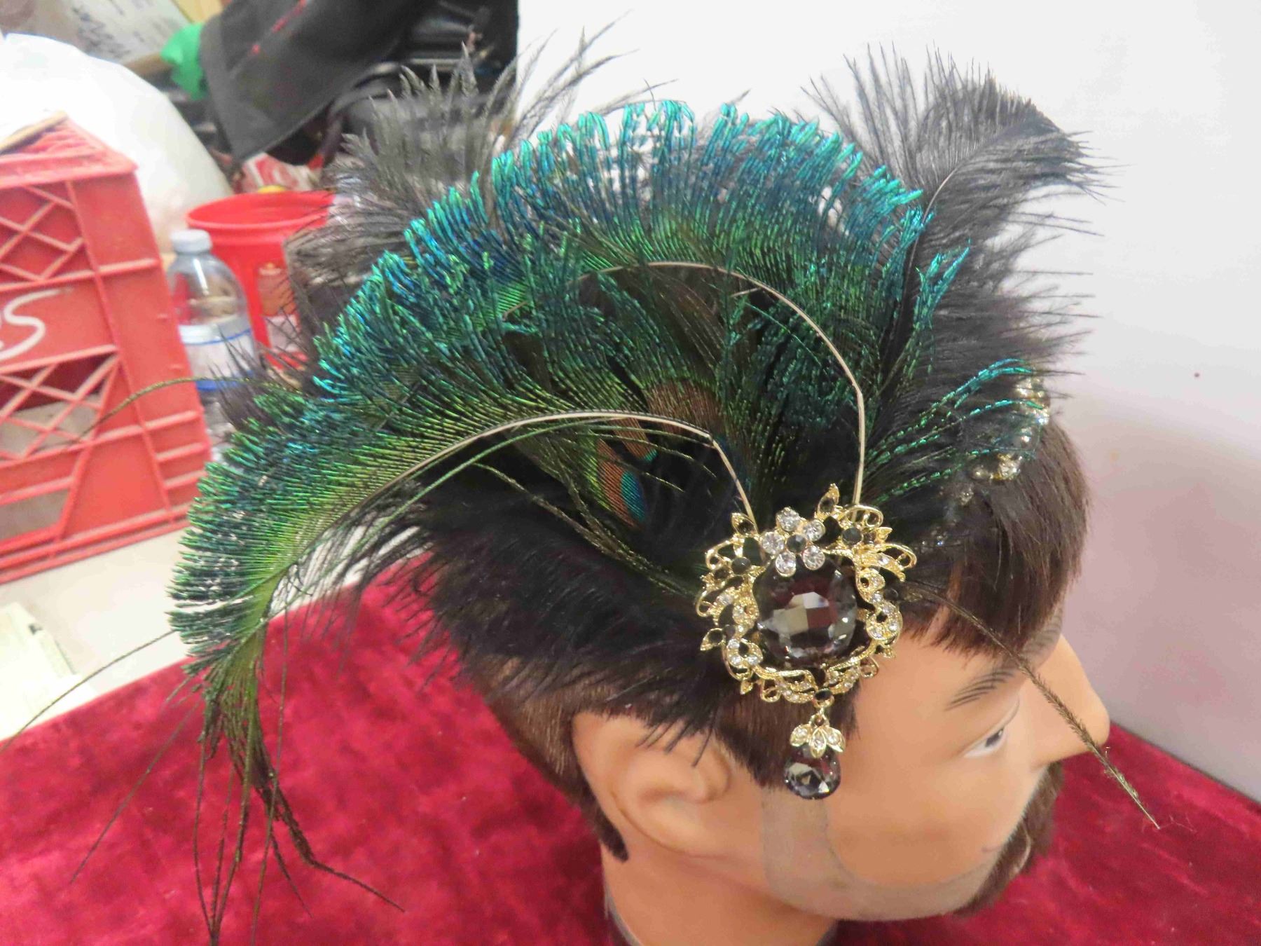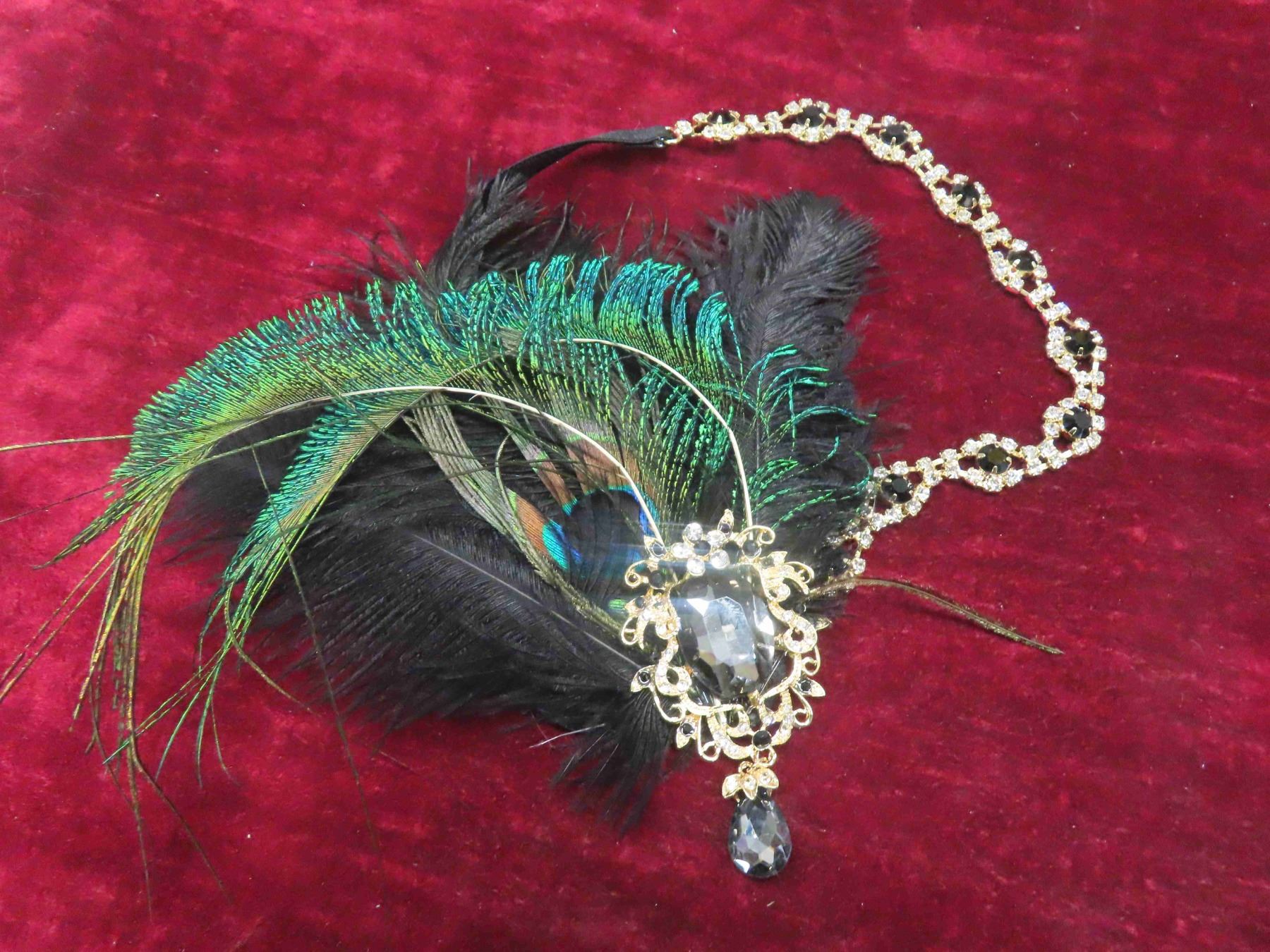 Decorative Head Band with Peacock Feathers , Gold Coloured Hair Band with Amethyst Stones (Very Pretty <3 )