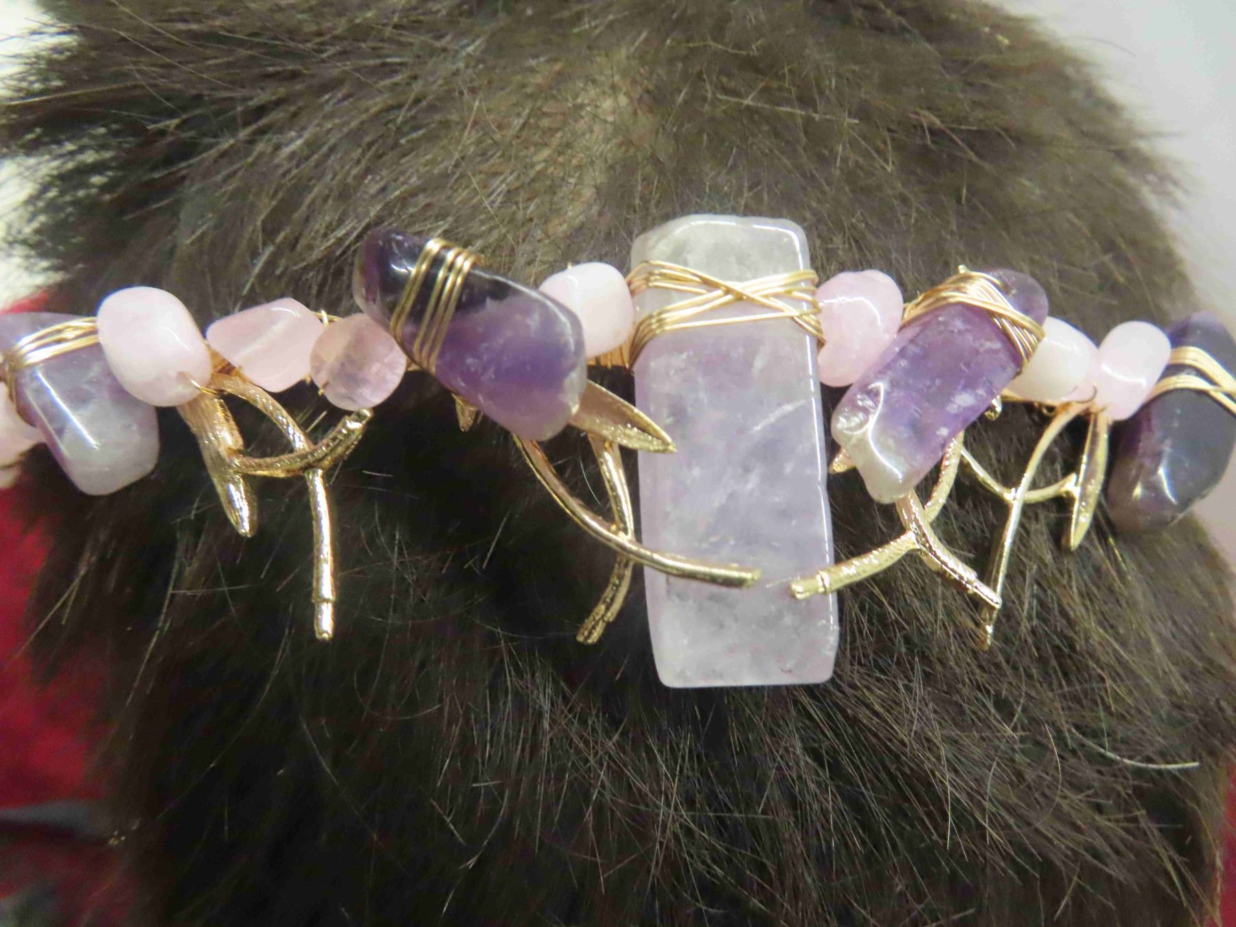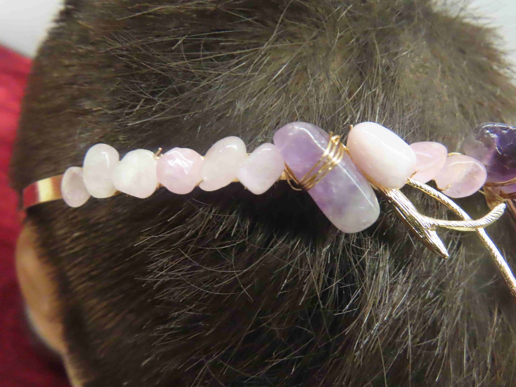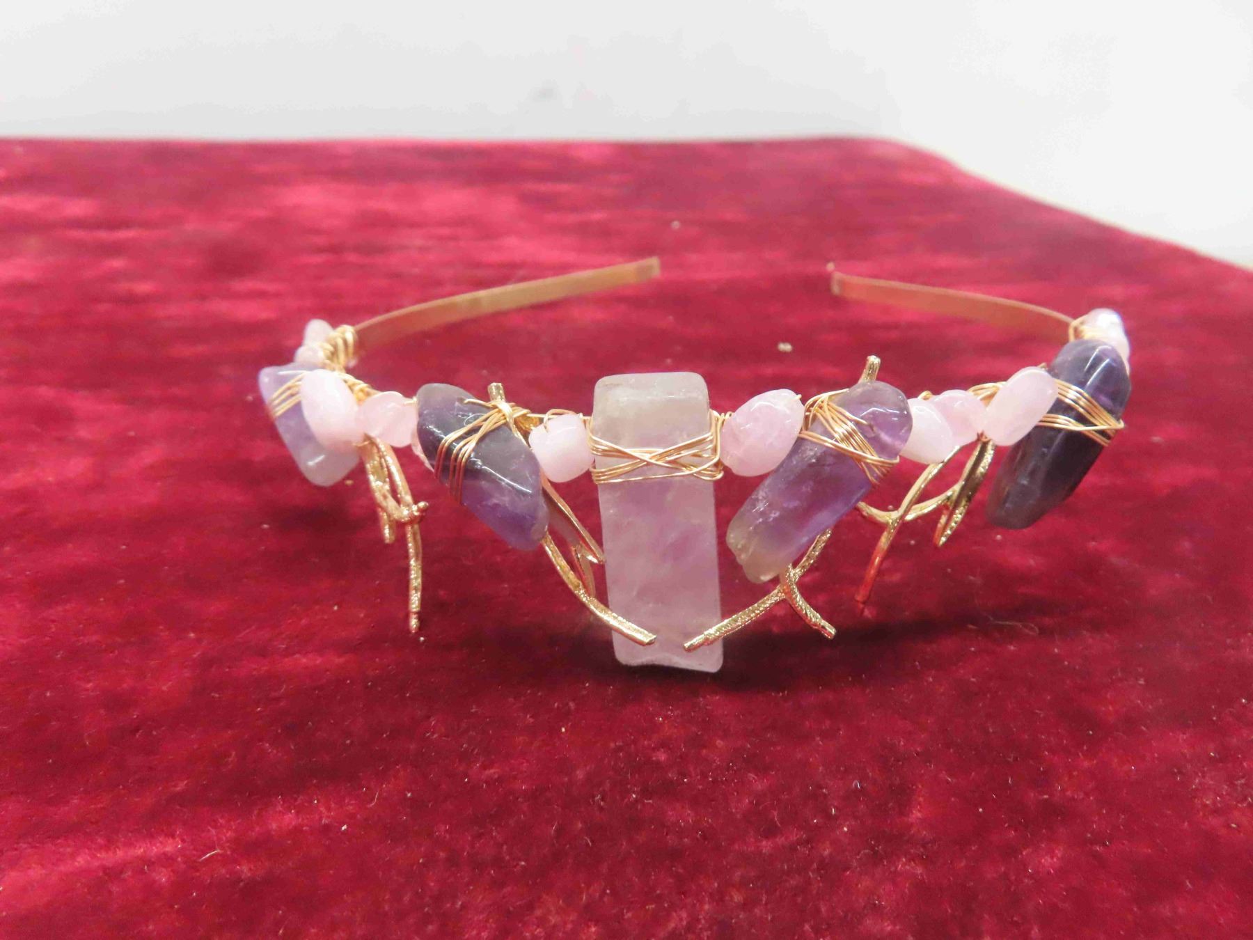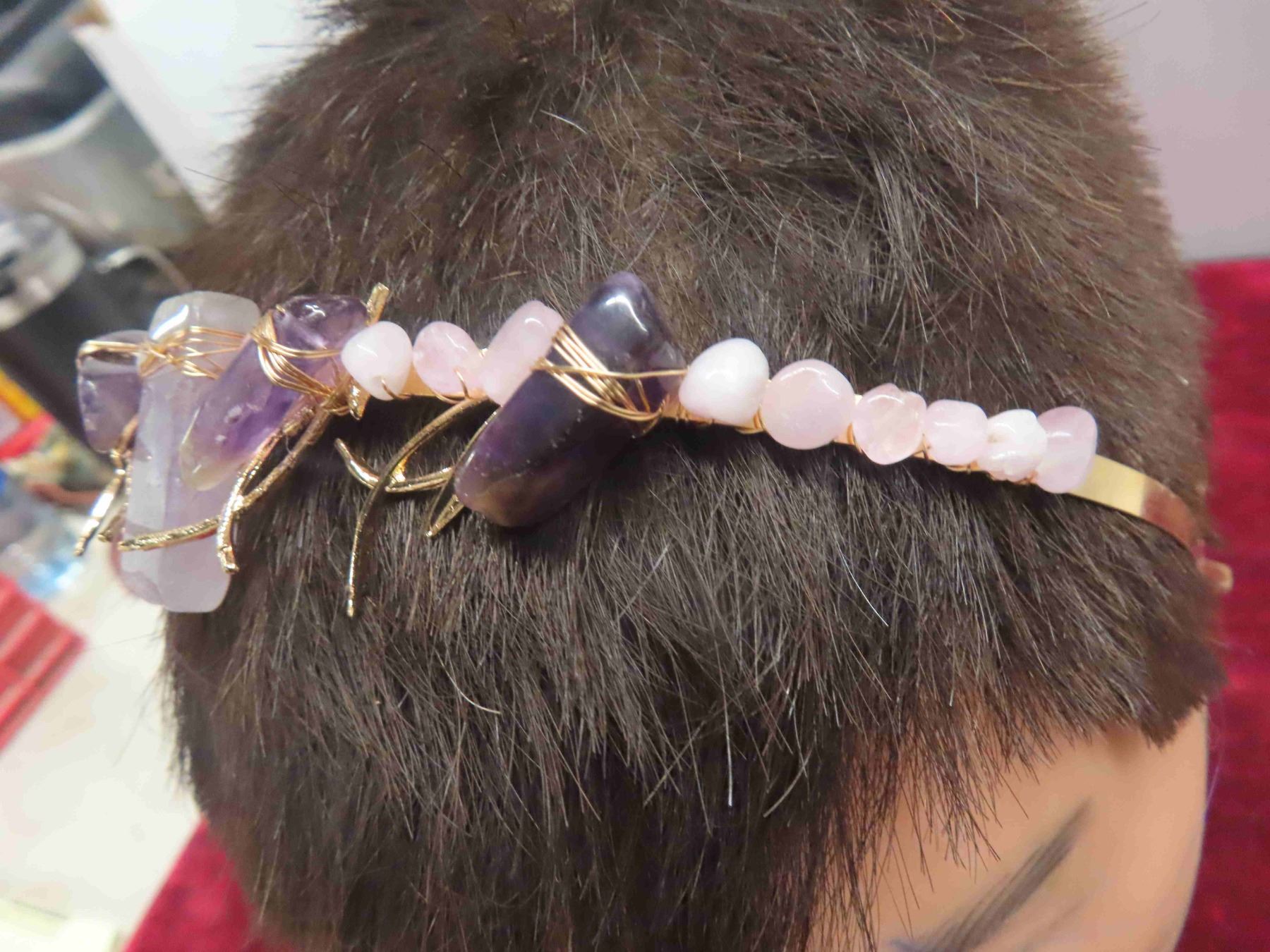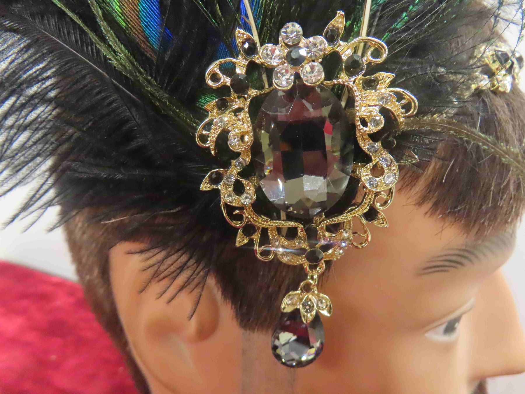 Decorative Head Band with Peacock Feathers , Gold Coloured Hair Band with Amethyst Stones (Very Pretty <3 )