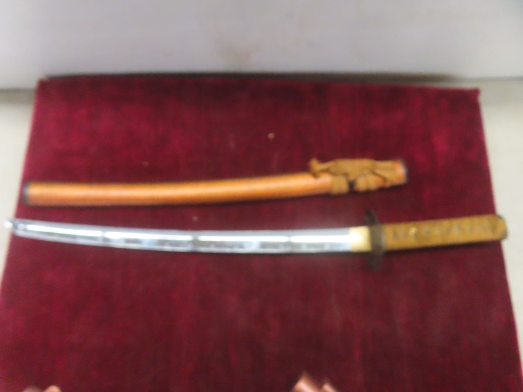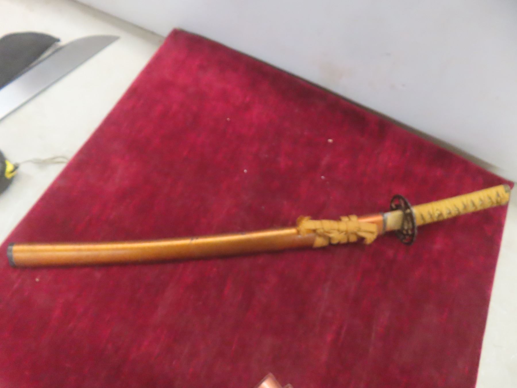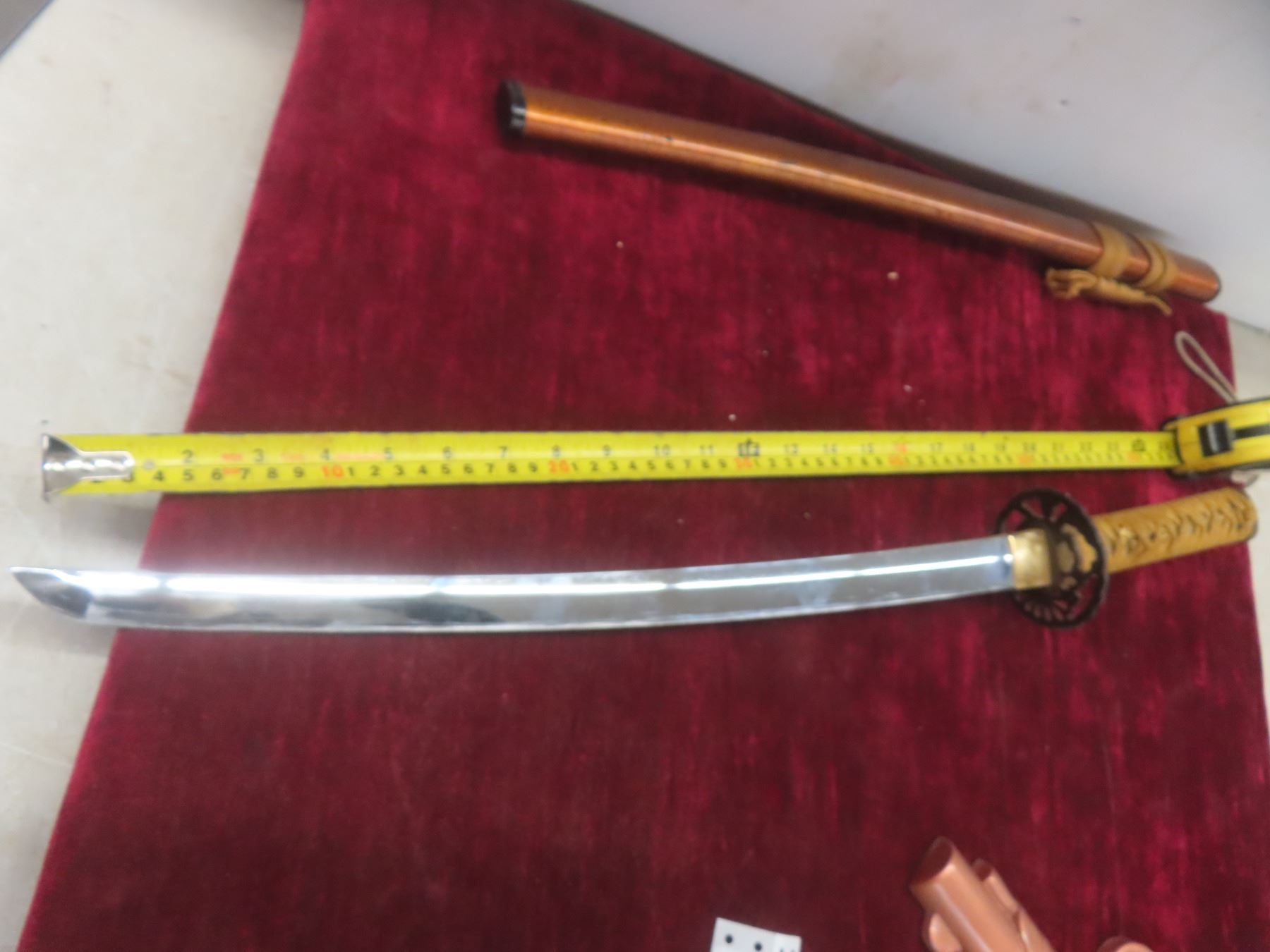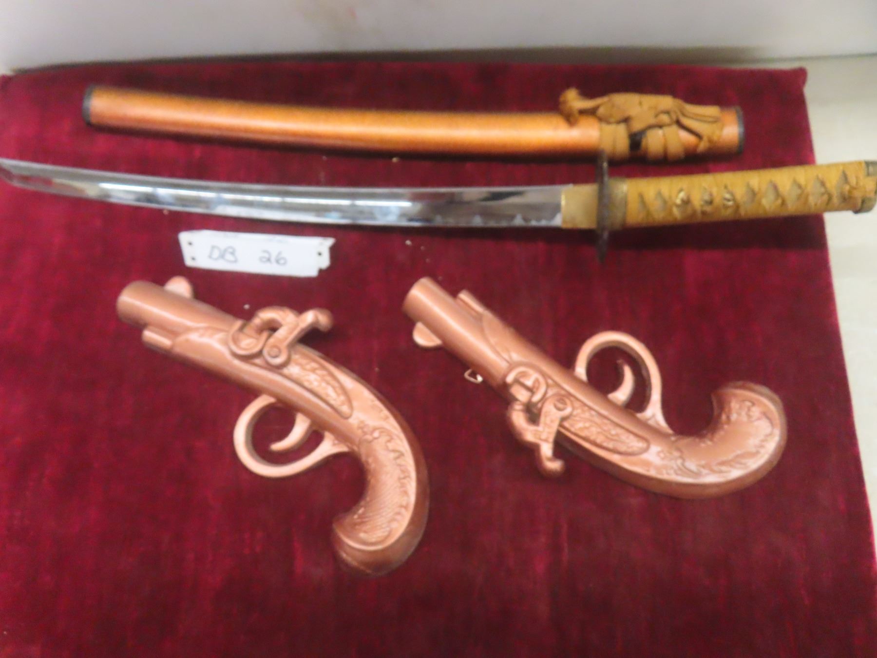 Decorative Samurai Sword with Sheath 26'' Long & 2 Cast Flintlock Wall Decorations