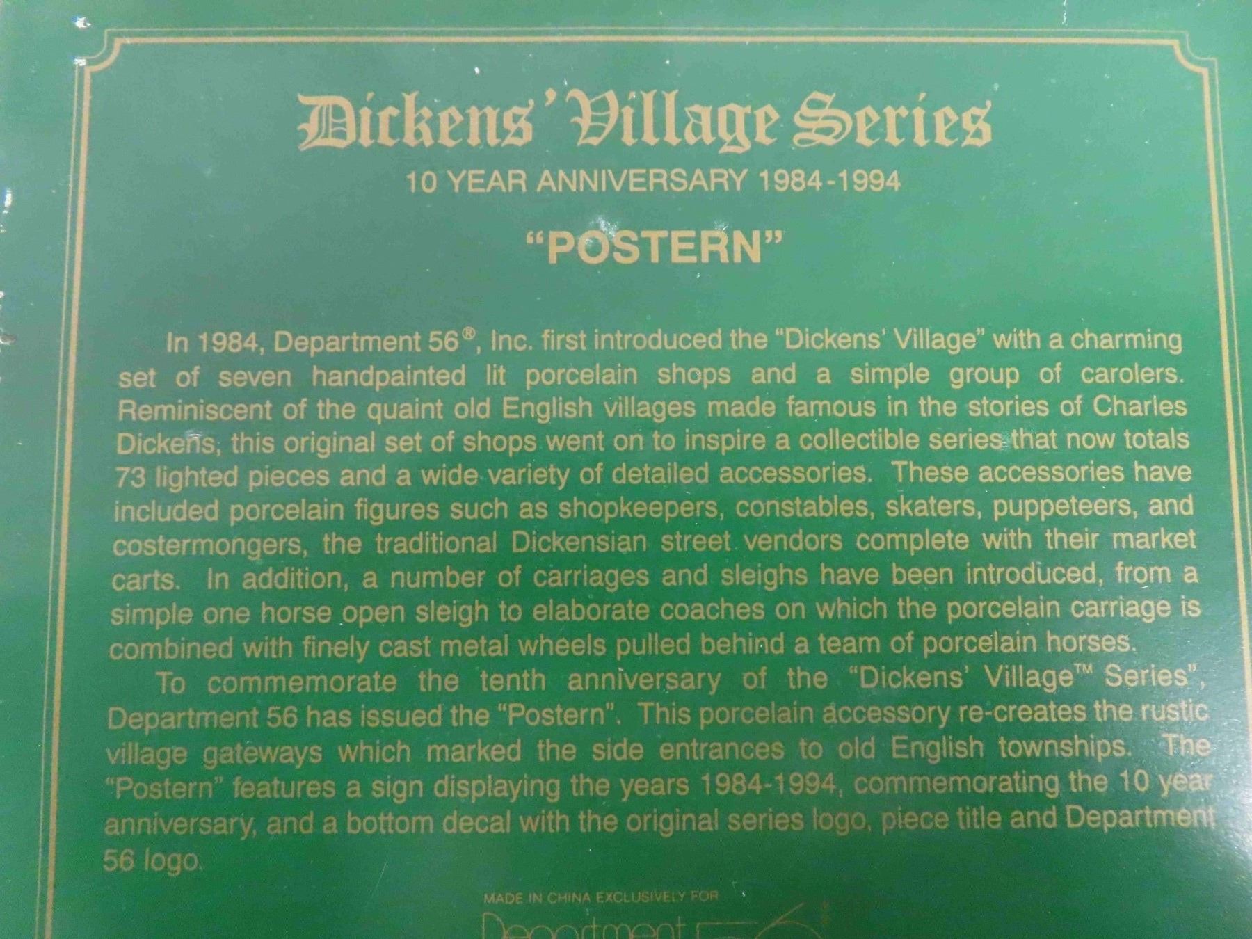 Dept 56 Dickens Village 10 Year Anniversary 1984-94 'Postern' 1994 Retired 1994