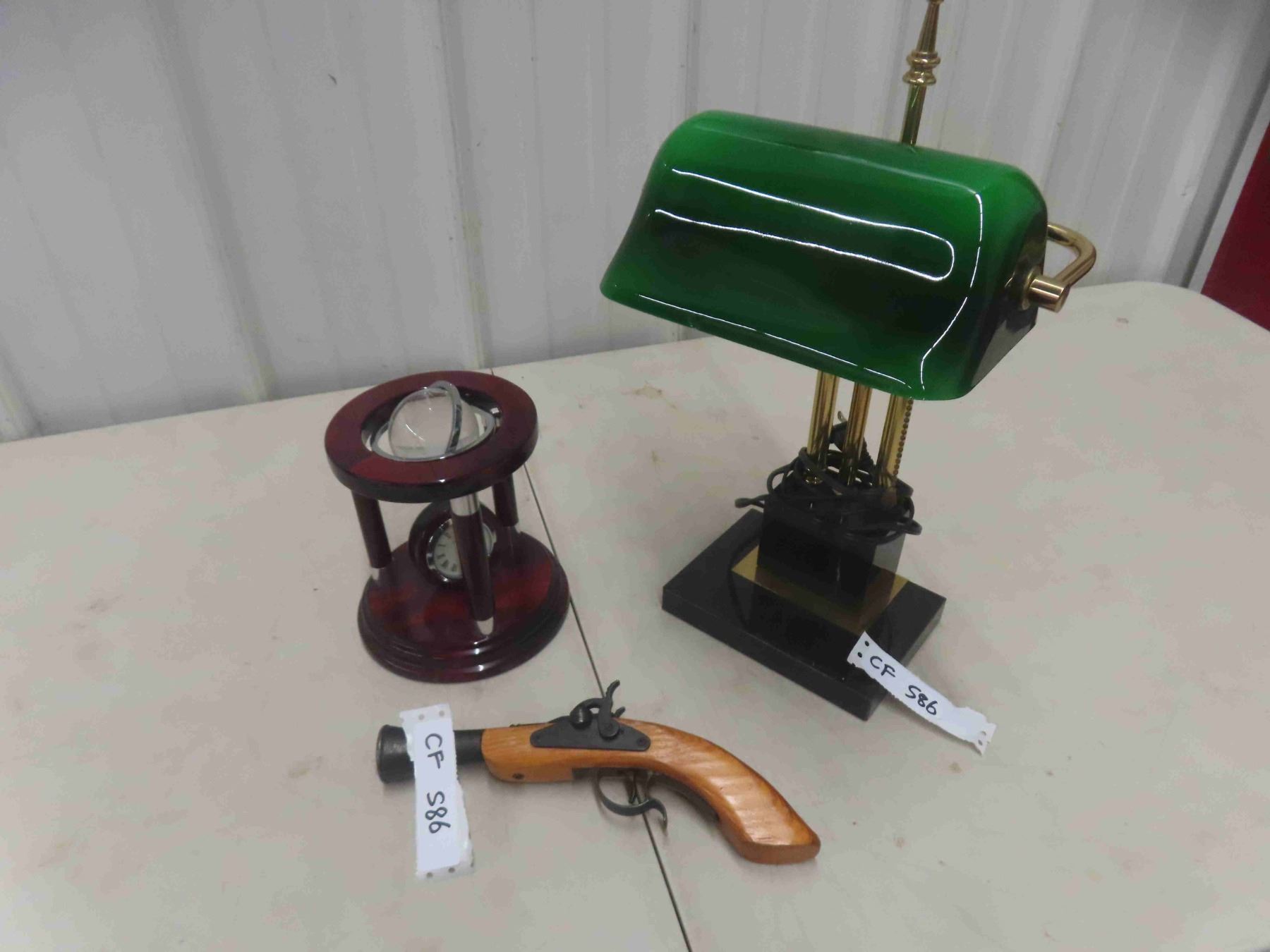 Desk Lamp , Mantle Clock/Globe, Decorative Blunder Pistol