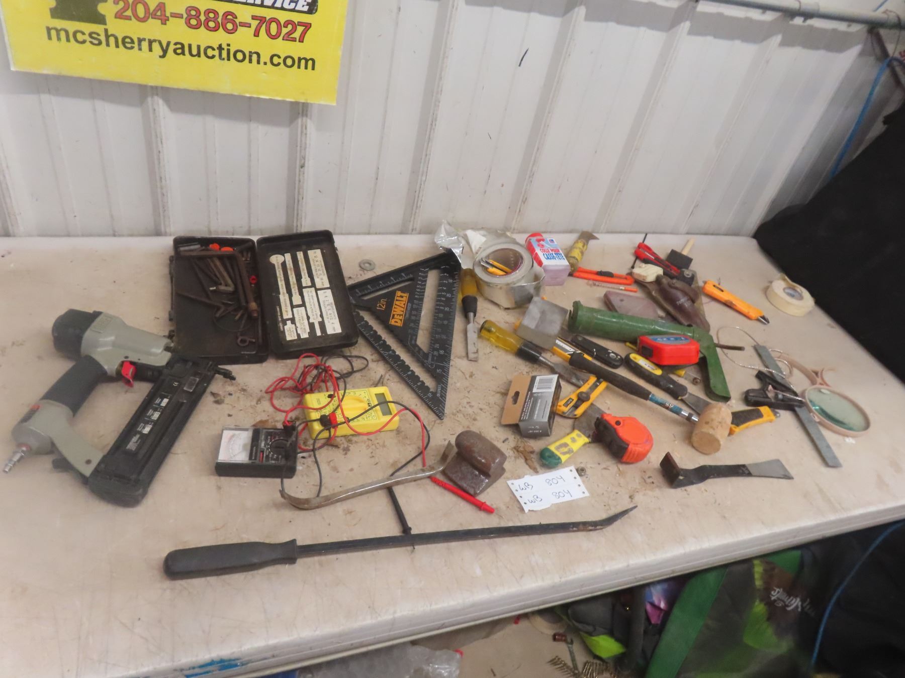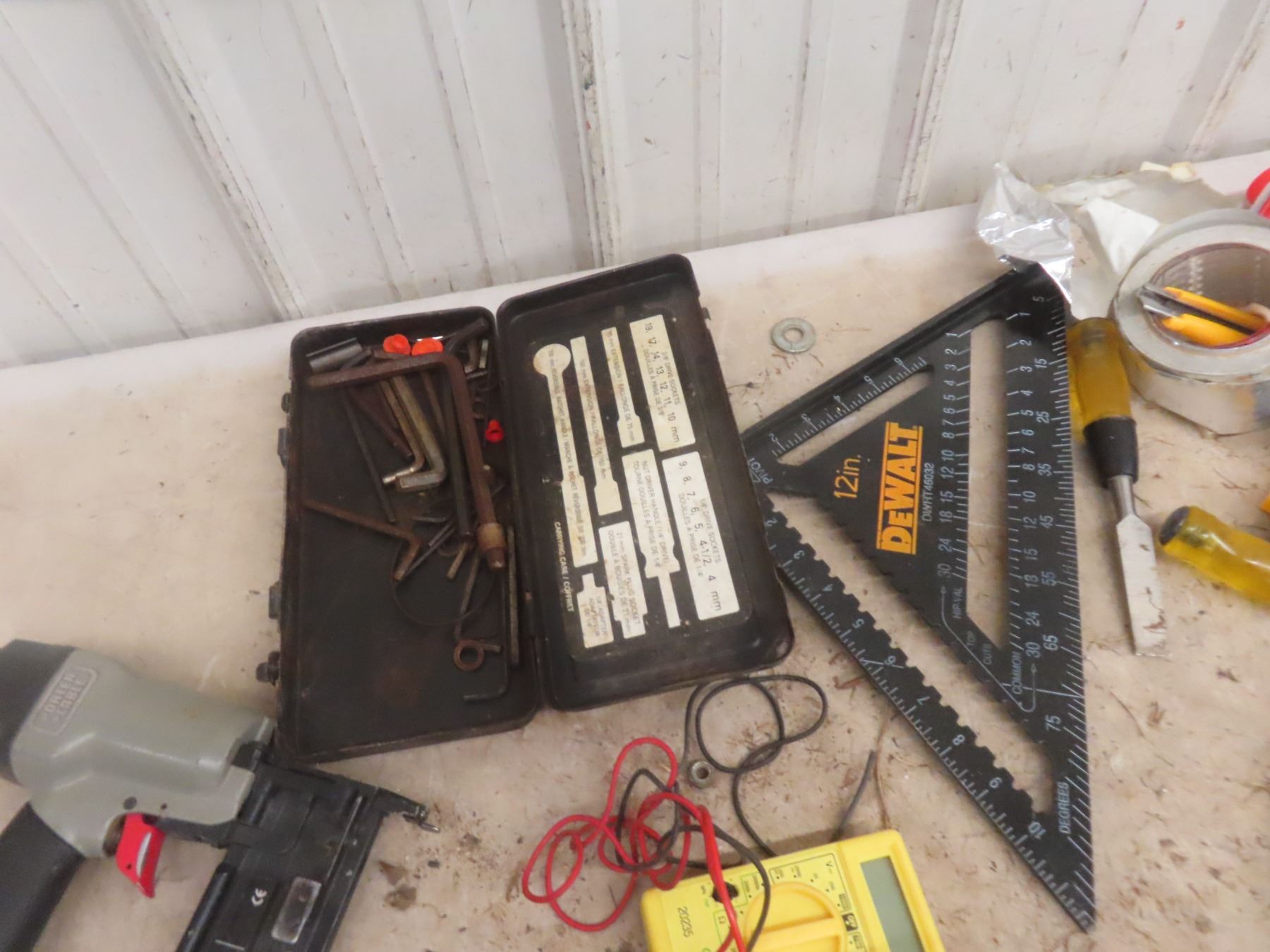 Dewalt 12" Angle Measurer, Air Nailer, Chisels, Scrapers, Utility Knives +