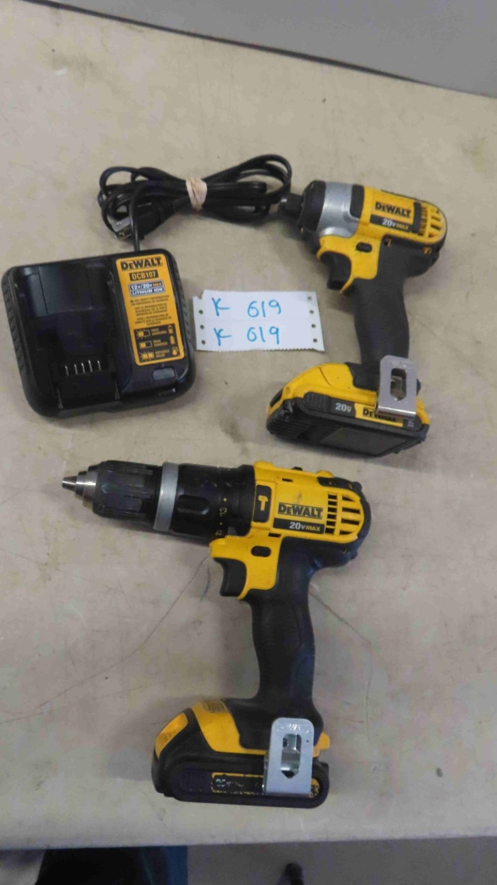 Dewalt 20V Drill, Impact, 2 Batteries & Charger -Tested and Working