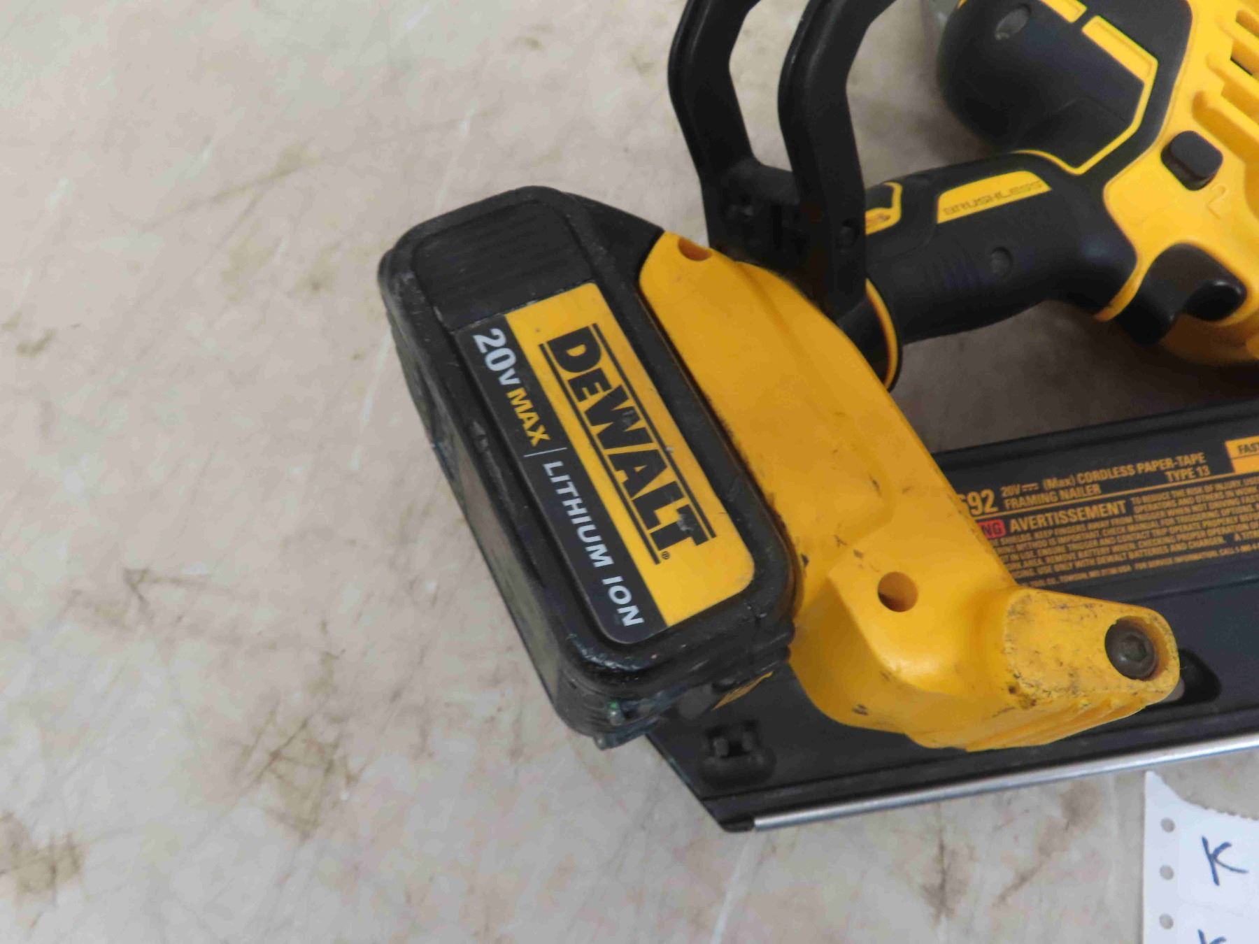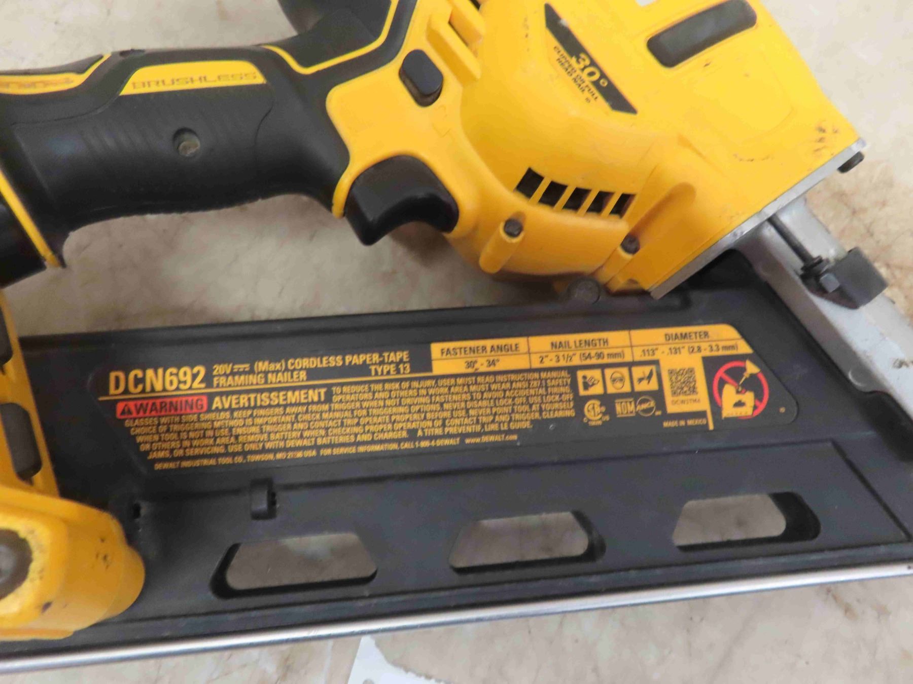 Dewalt 20V Model DCN 692 Framing Nailer with Battery and Charger, Works.