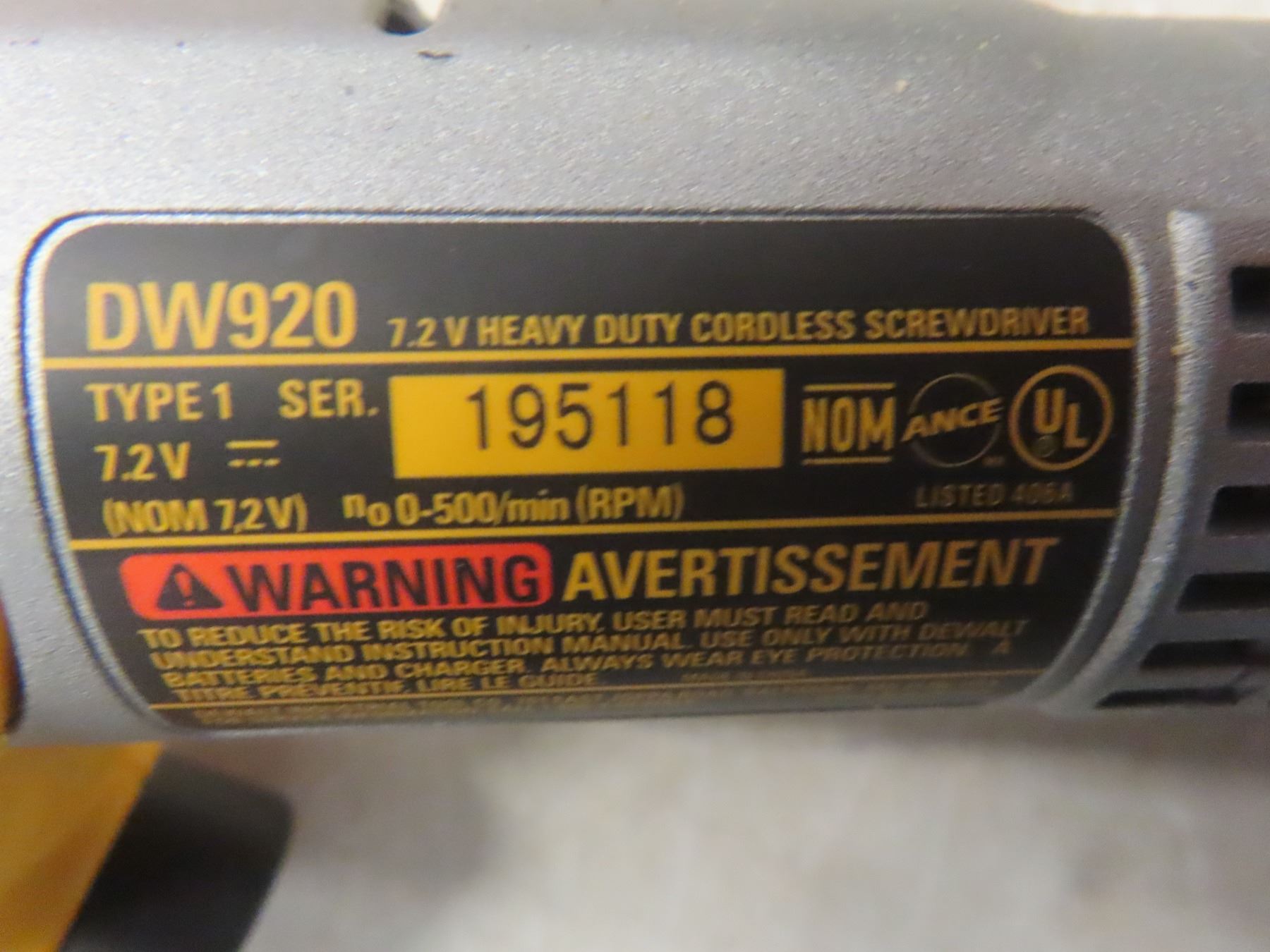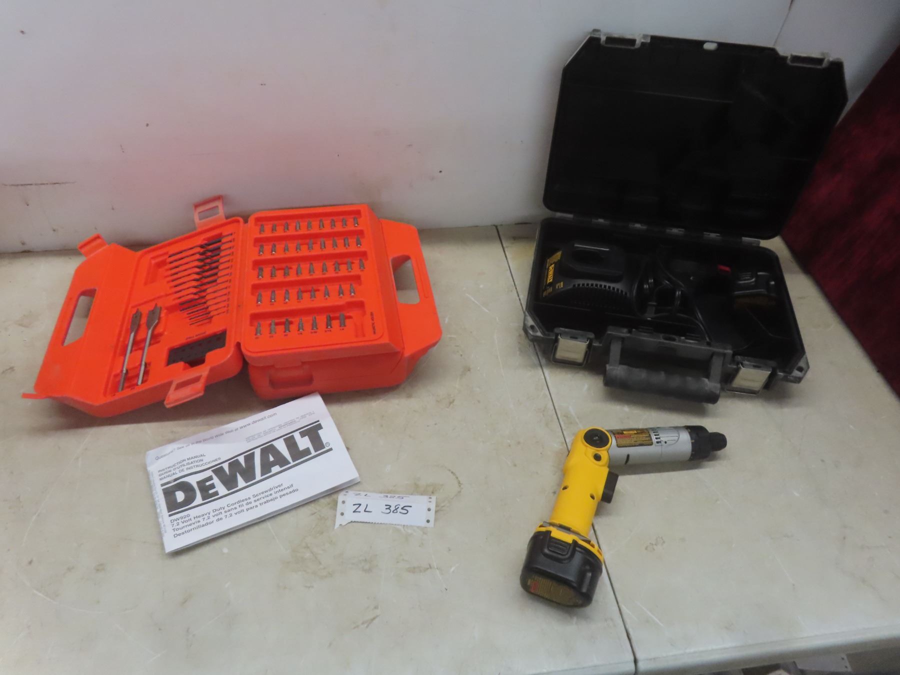 Dewalt Cordless 7.2V Screwdriver with 2 Batteries, Charger, and Case, Plus Black & Decker Drill Bit Set, Like New