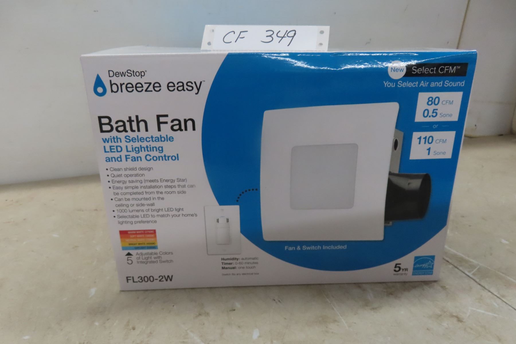 Dewstop Bath Fan with Selectable Lighting and Fan Control New or Store Return