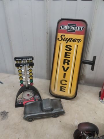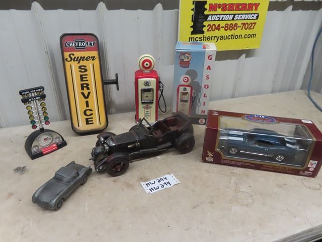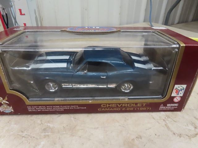 Die Cast 67 Camero 1/18 scale, Metal Hot Rod, Gas Bowser Alarm Clock plus more