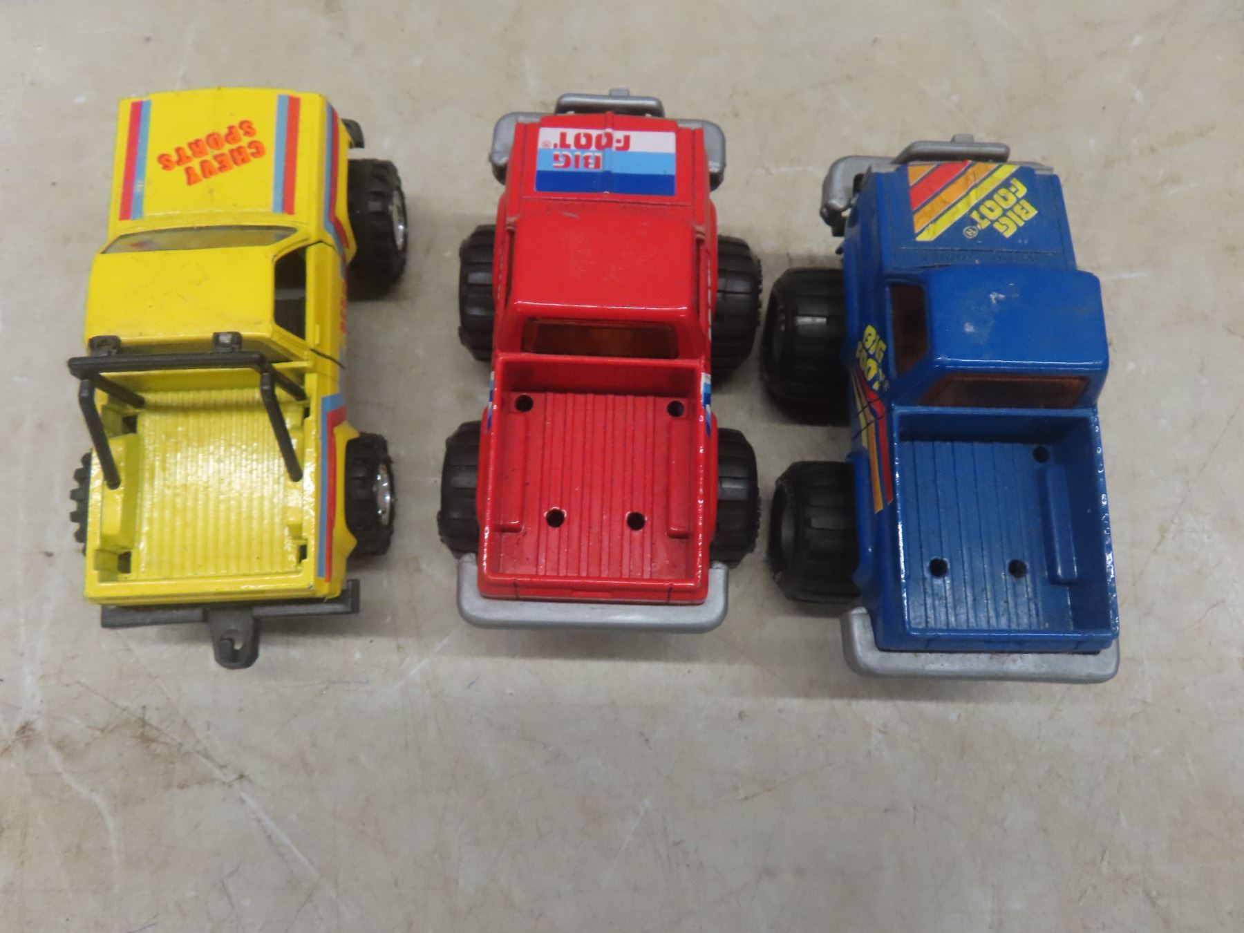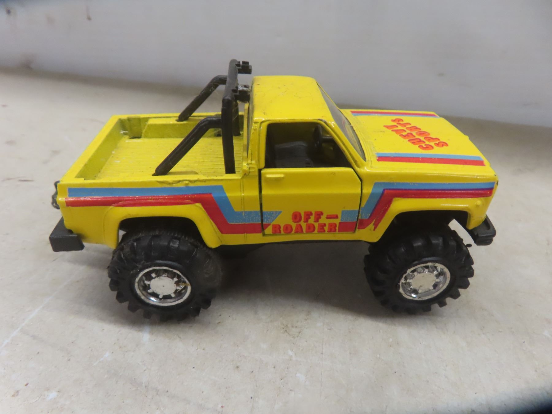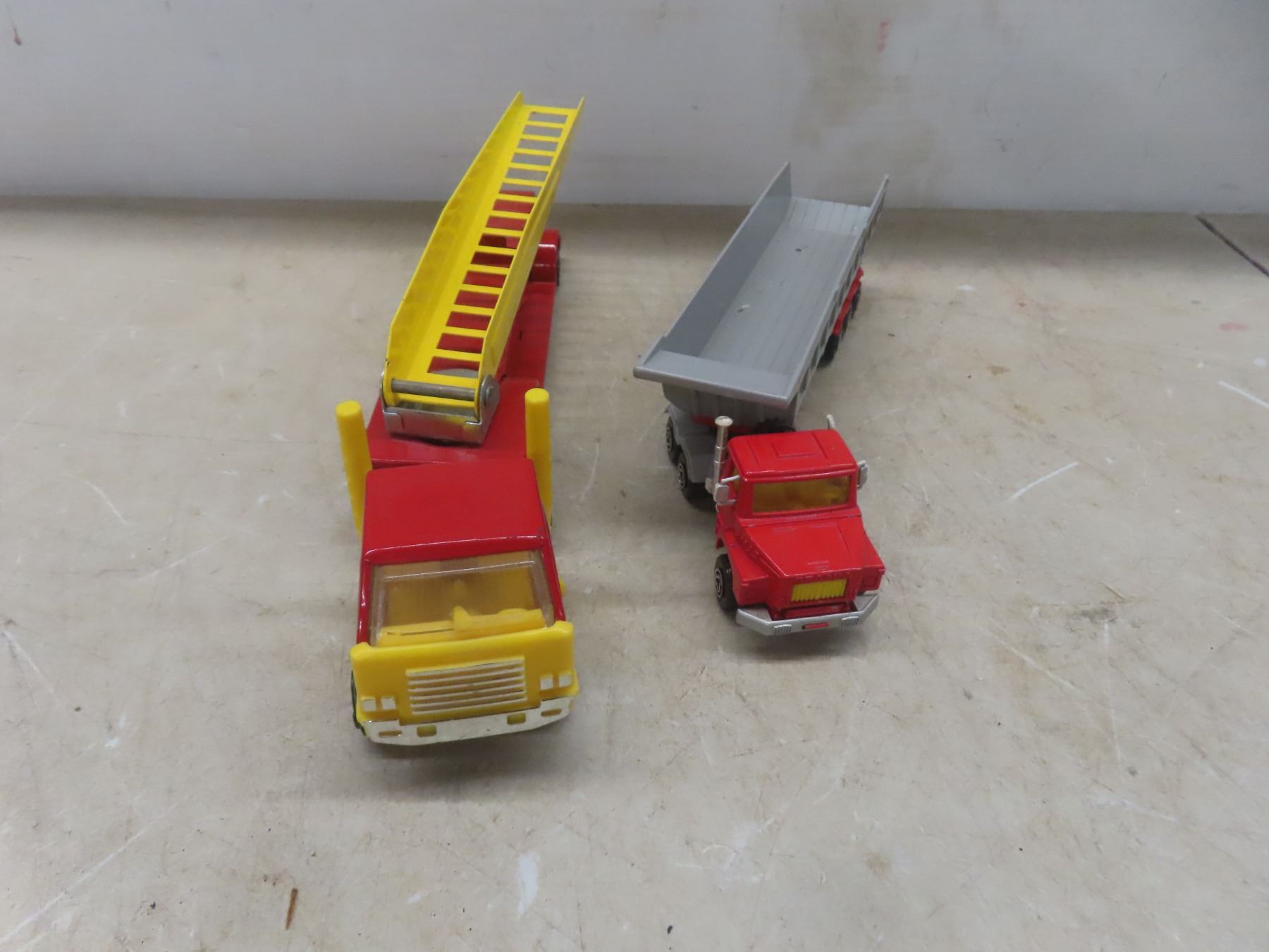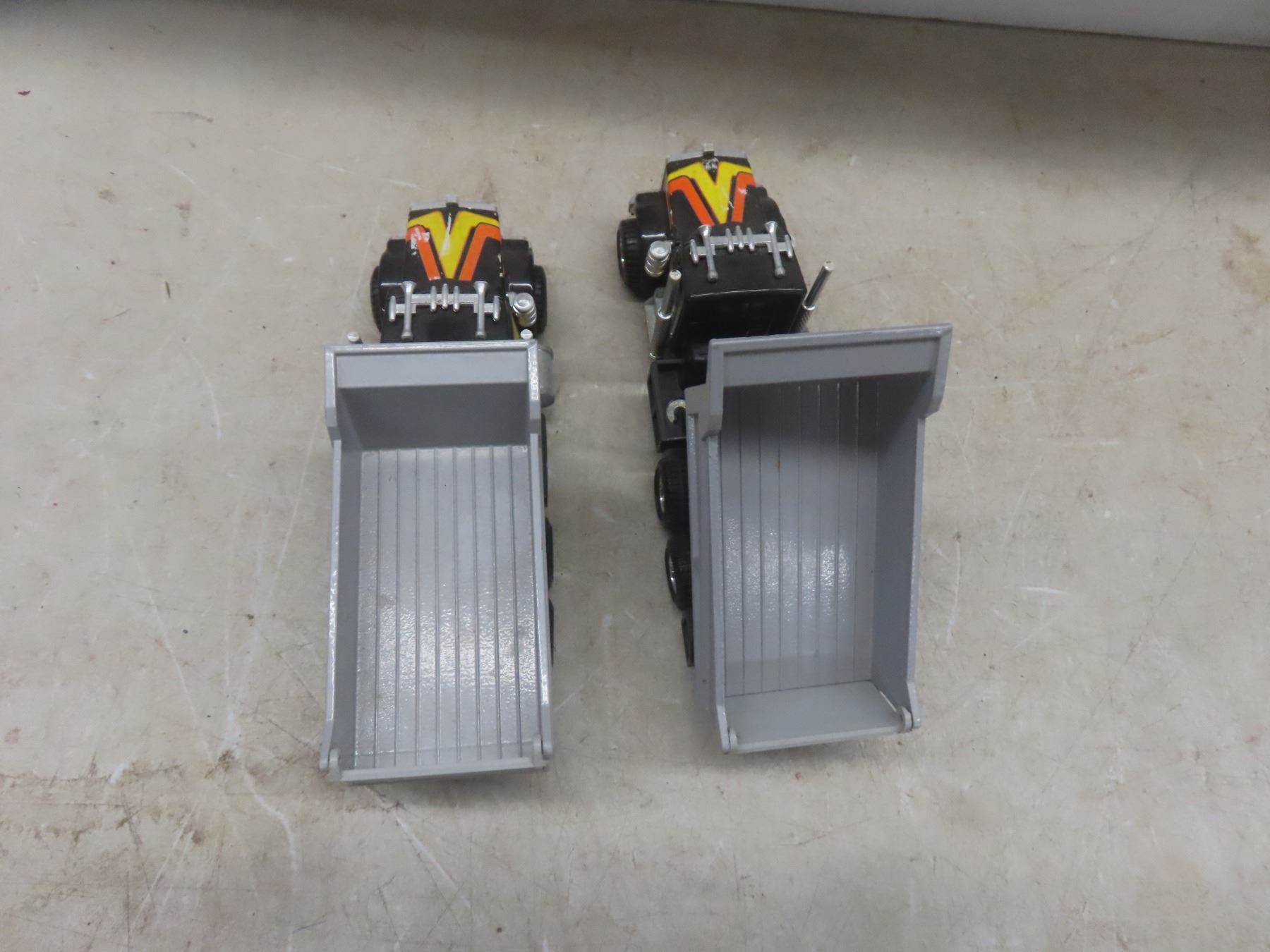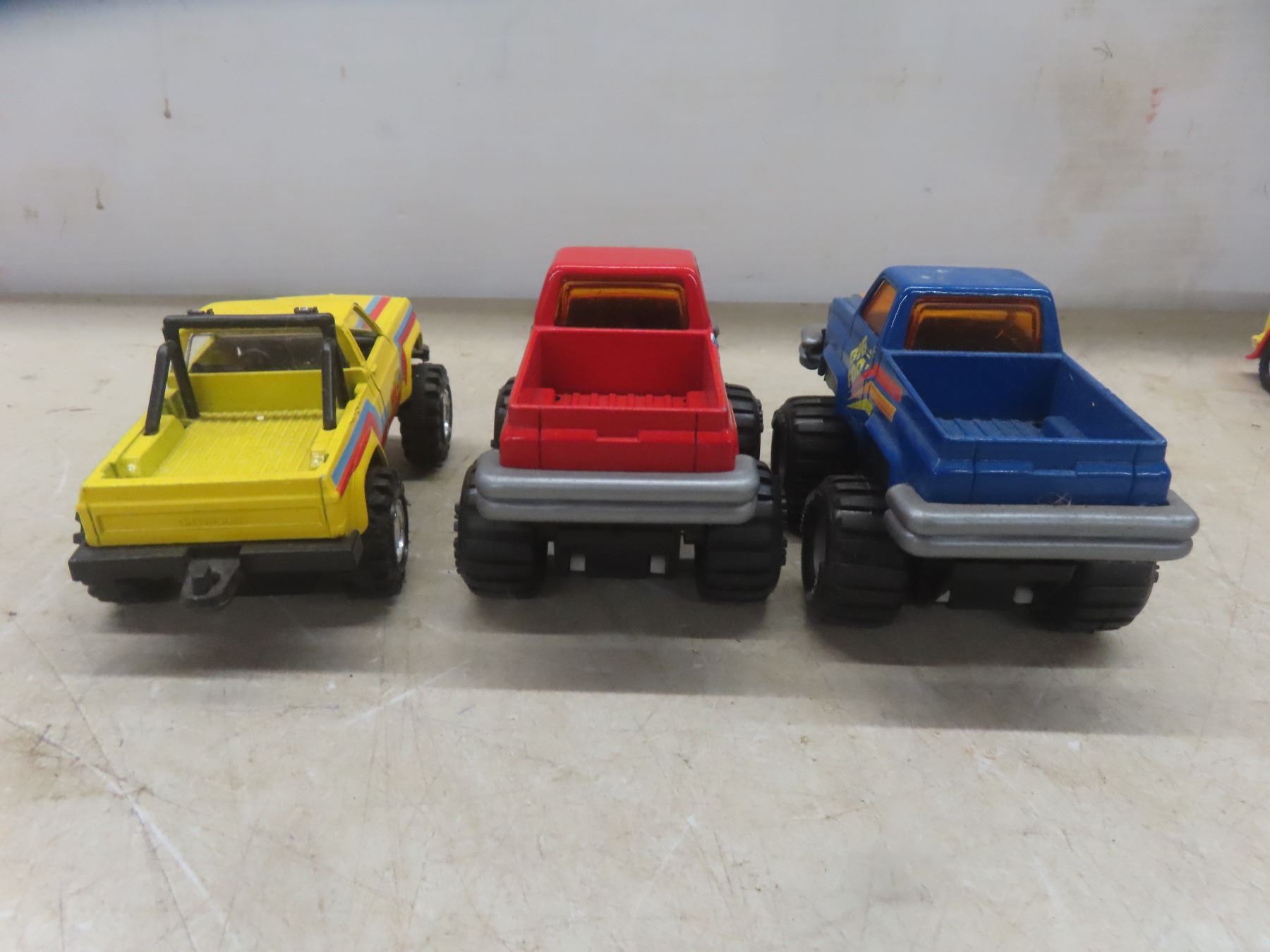 Diecast Vehicles: Majorette, Yatming, Tonka Ambulance, Service Van, Dump Trucks.