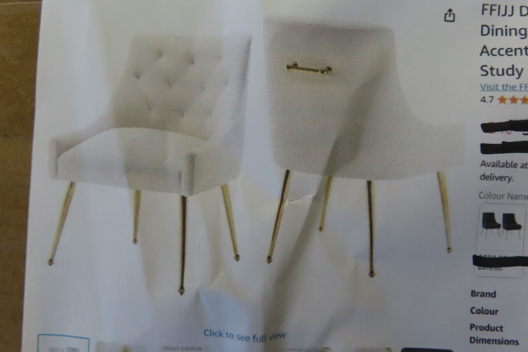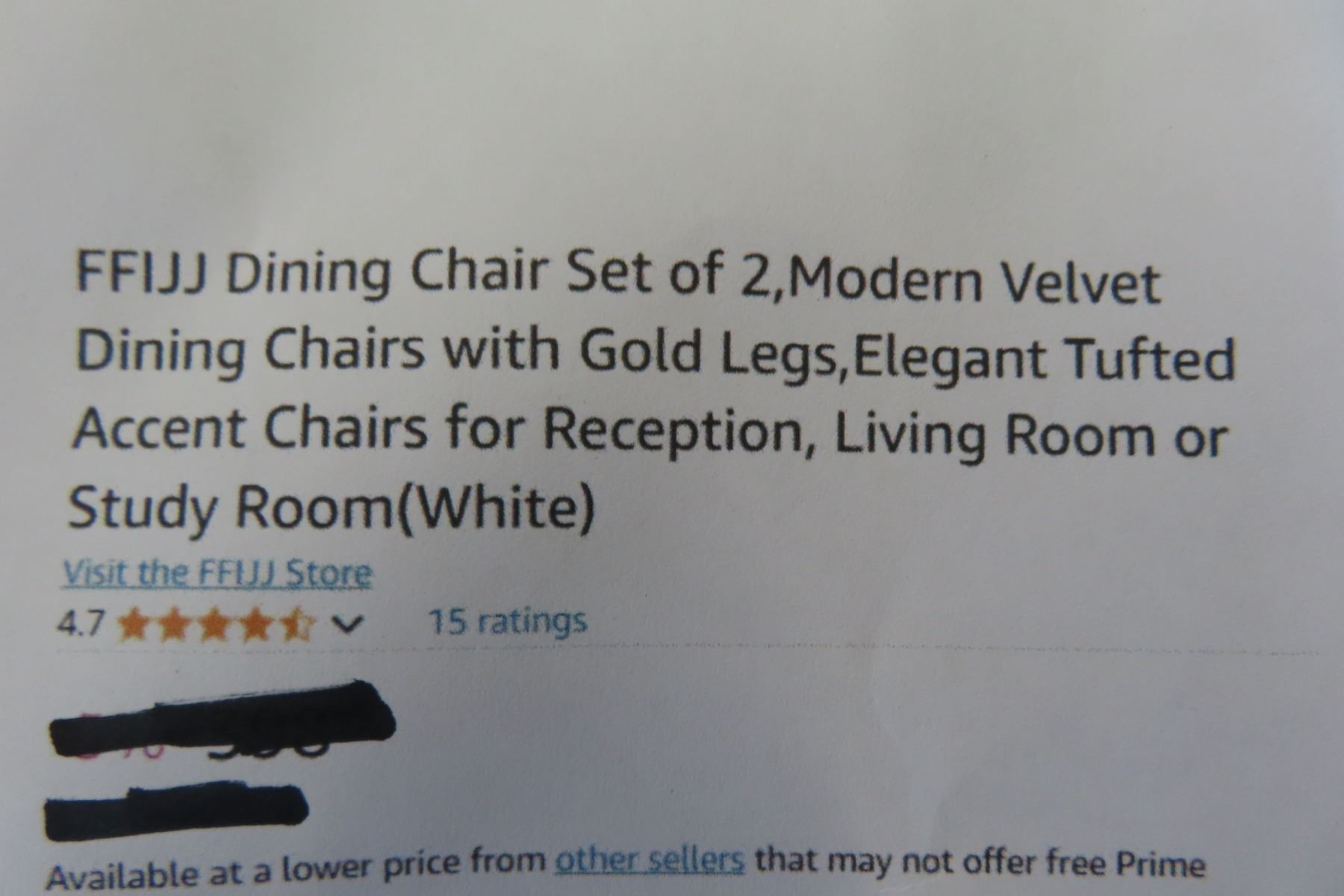 Dining Chair Set of 2, Modern, Velvet, Gold Legs, Tufted Accent Chairs - New or Store Return