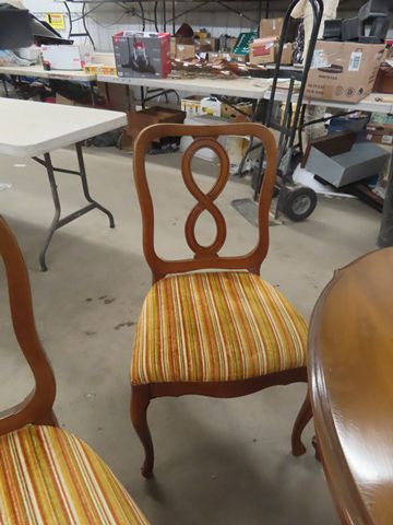 Dining Room Table 29"×42"×62" with (2) 12" Leaves + Silencer Pads & 4 Chairs with Upholstered Seats