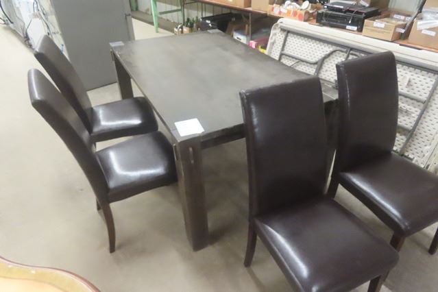 Dining Room Table with 4 Posts 63 1/2'' x 38'' x 30'' with 4 Dark Brown Upholstered Chairs