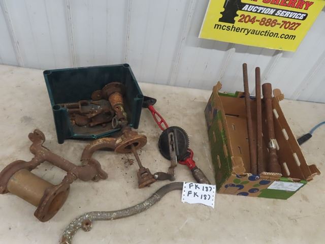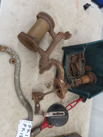 Disaseembled Water Pump, Press Drill, Tire Iron