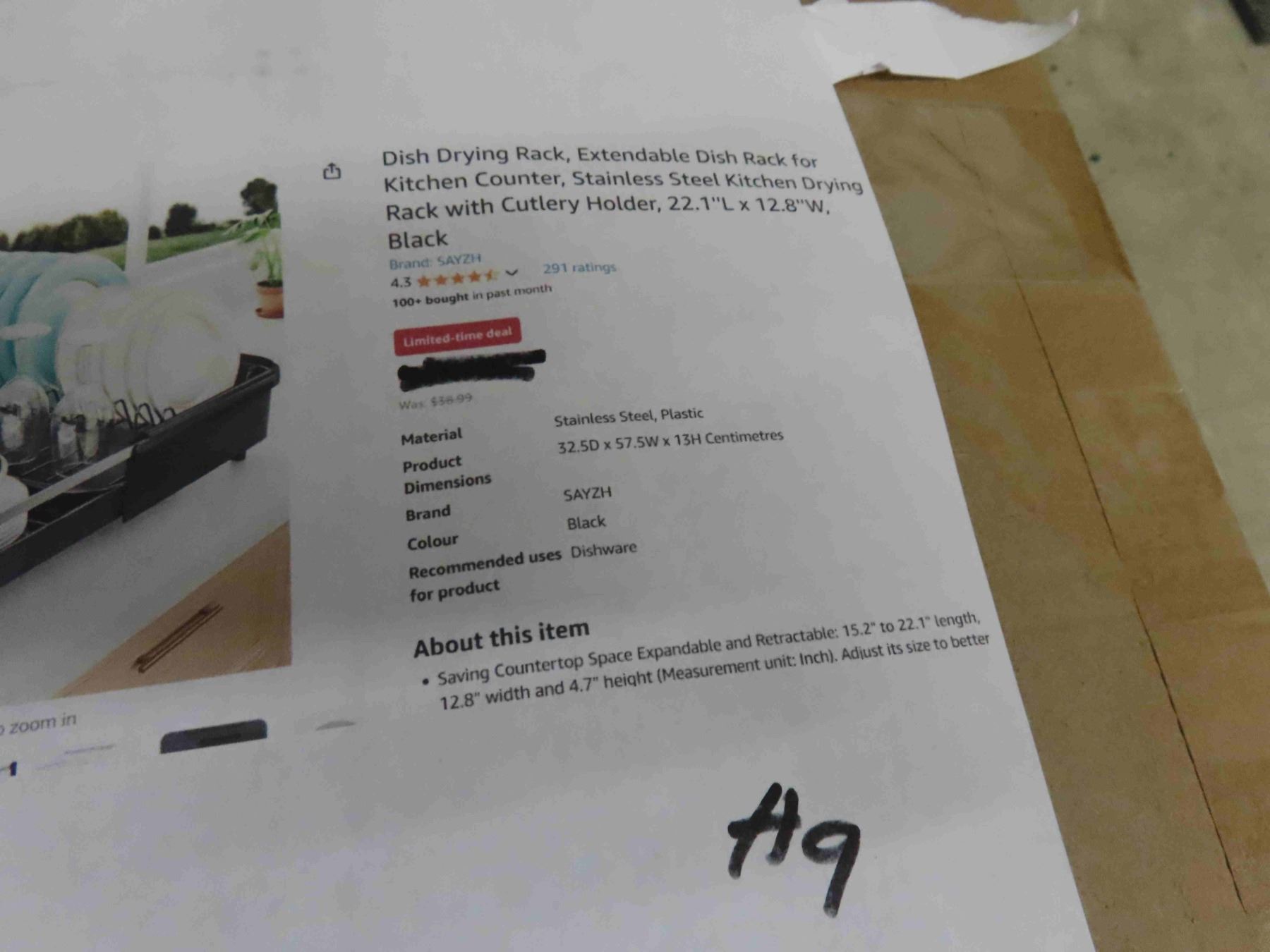 Dish Drying Rack , Extendable Dish Rack for Kitchen Counter, Stainless Steel Kitchen Drying Rack with Cutlery Holder 22.1'' L x 12.8'' W - NEW OR STORE RETURN.