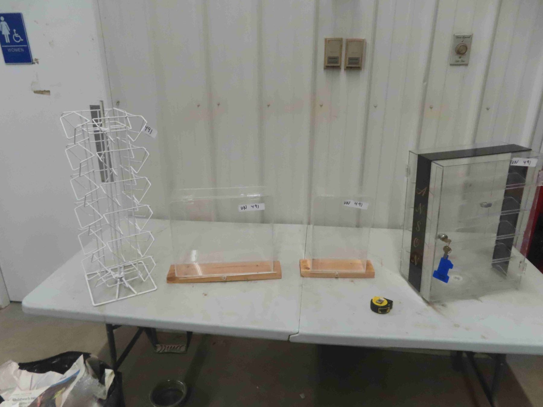 Display Case - Swivel , 2 Sided, Locking 8" x 13.5" x 19", Display Case 4" x 8" x 12", Display Case 4" x 12" x 14" & open Swivel Rack 9" x 9" x 24"