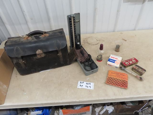 Doctor's Bag , Hi Blood Pressure Machine w Case, & Misc Containers