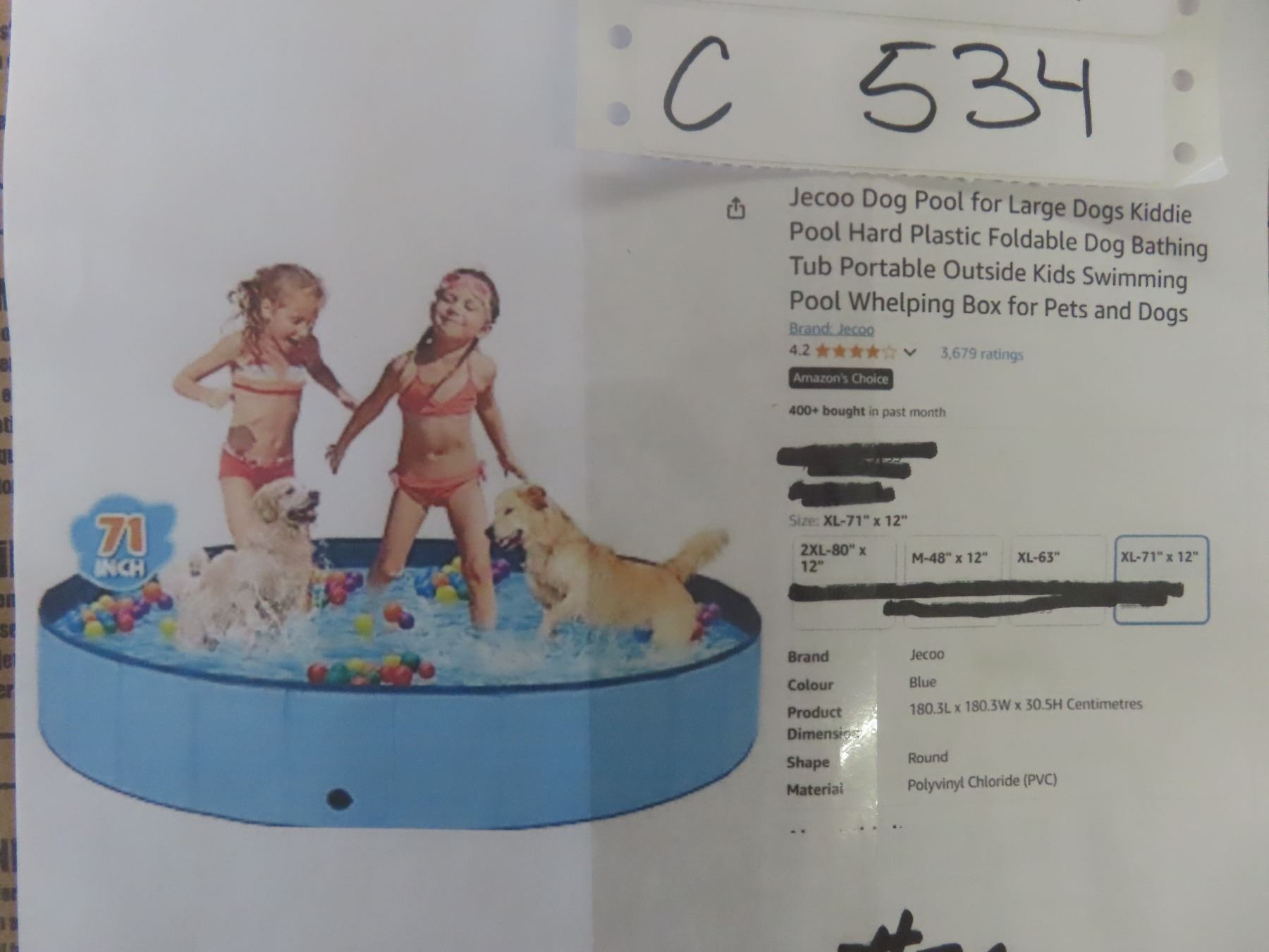 Dog Pool For Large Dogs, Hard Plastic Pool, Foldable - New or Store Return