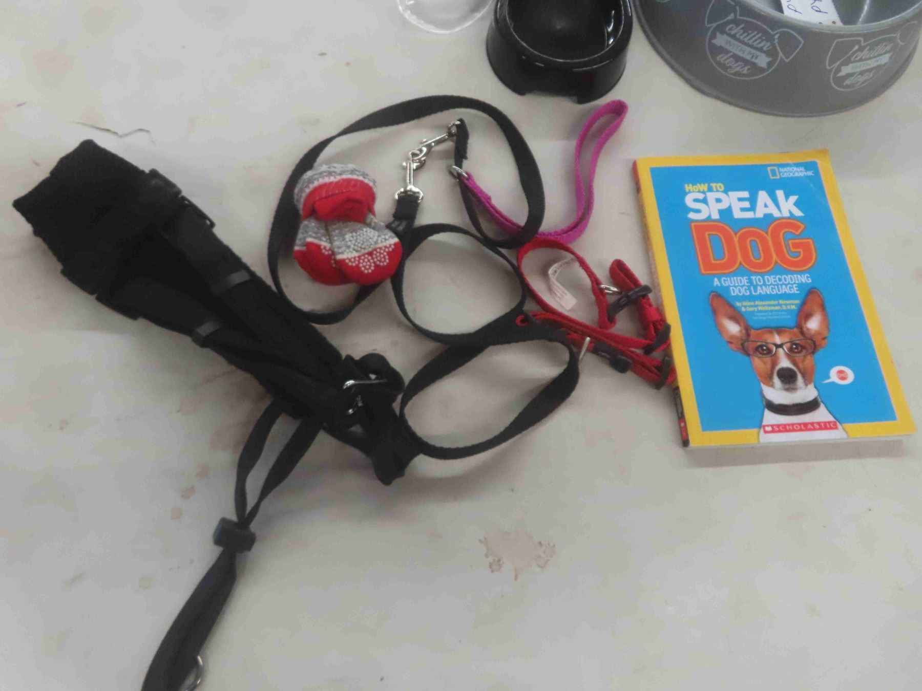 Dog Supplies: Bowl, Leashes, Elephant Costume & More (Details in Last Photo)
