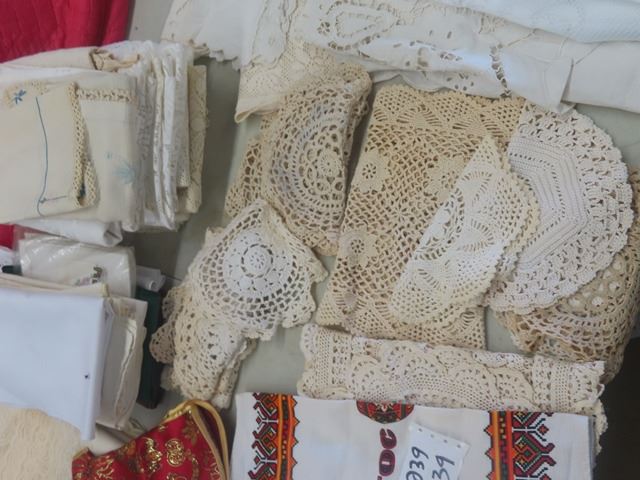 Doilies, Lace Table Cloth, Vintage Aprons plus more