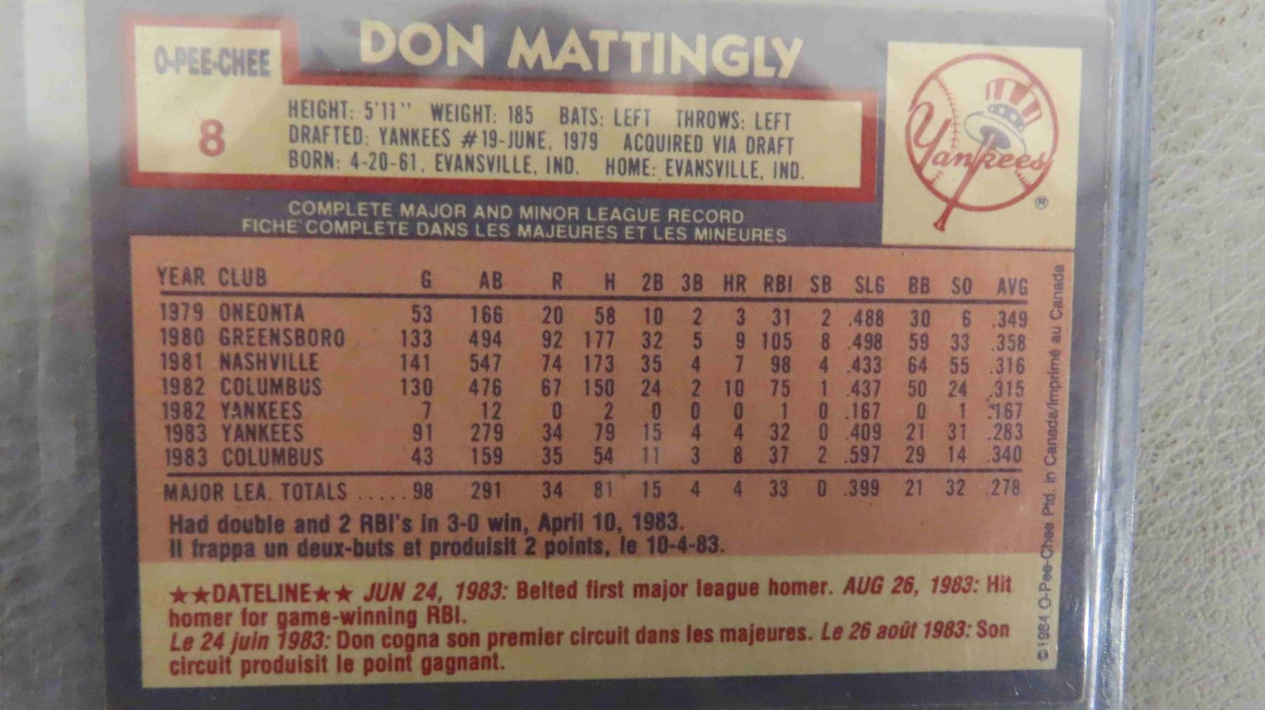 Don Mattingley New York Yankees O-Pee-Chee Rookie Card