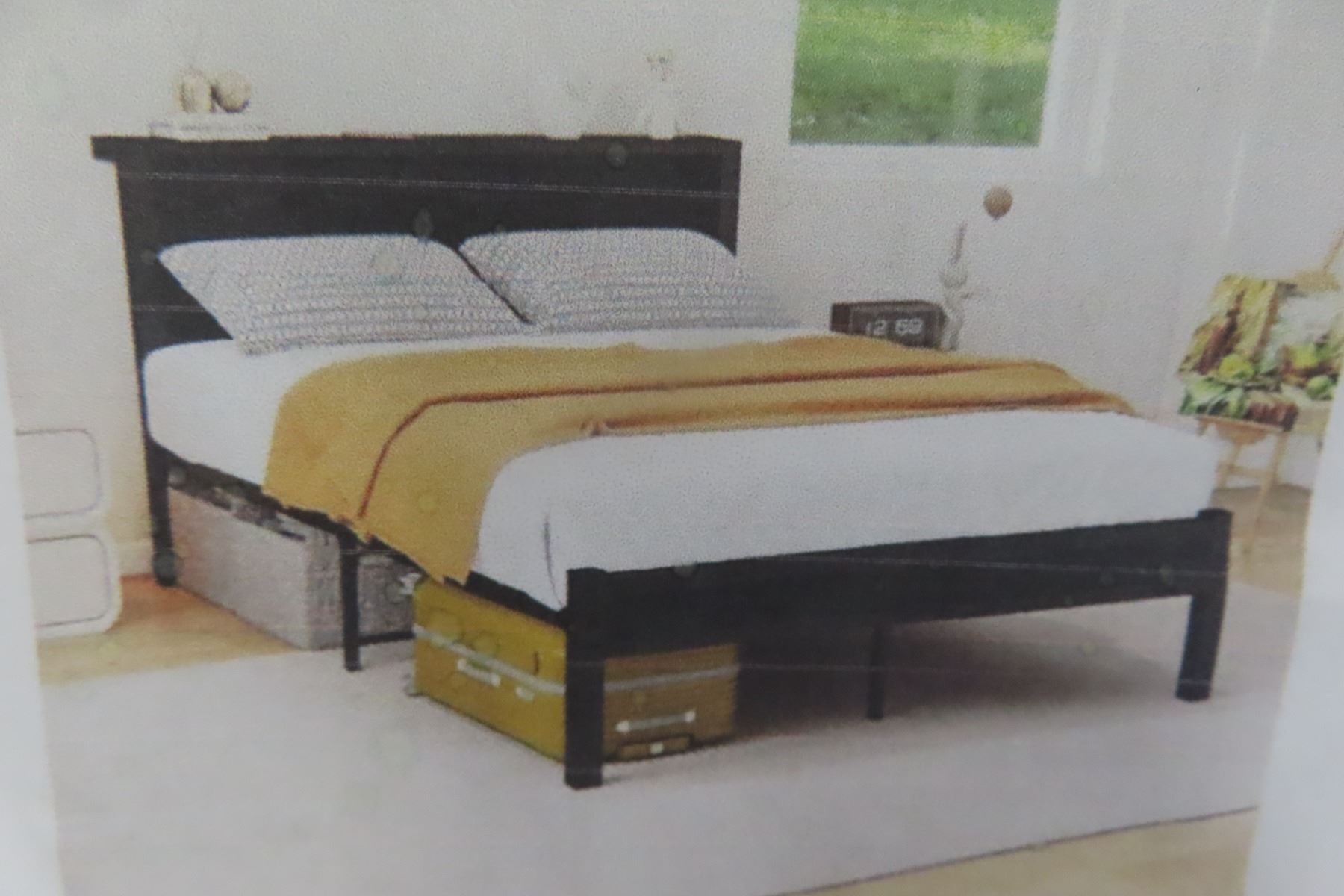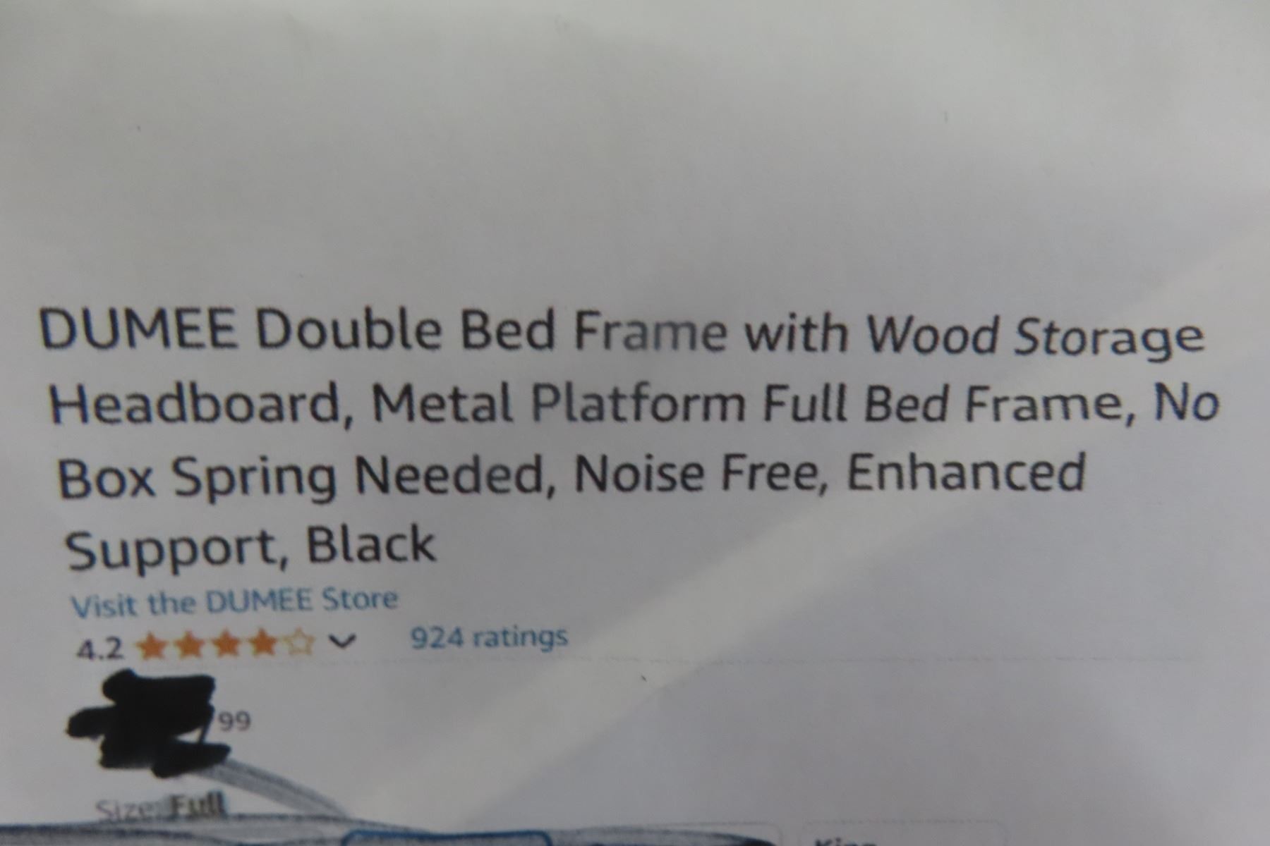 Double Bed Frame with Wood Storage Headboard - No Box Spring Needed