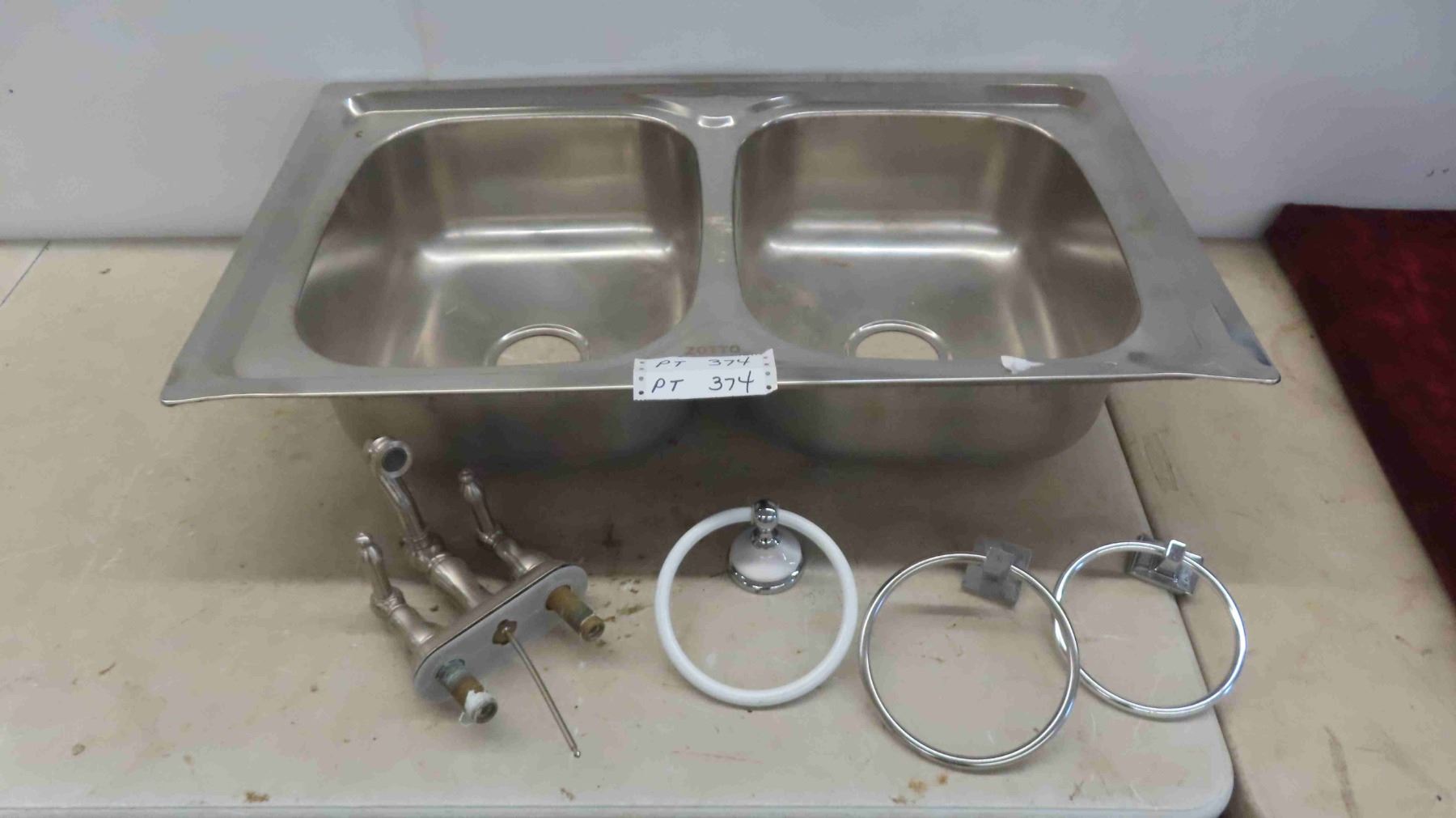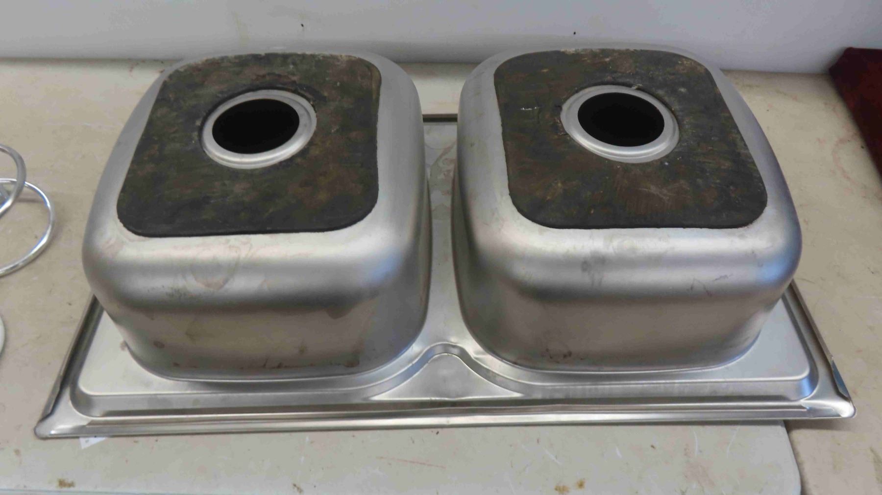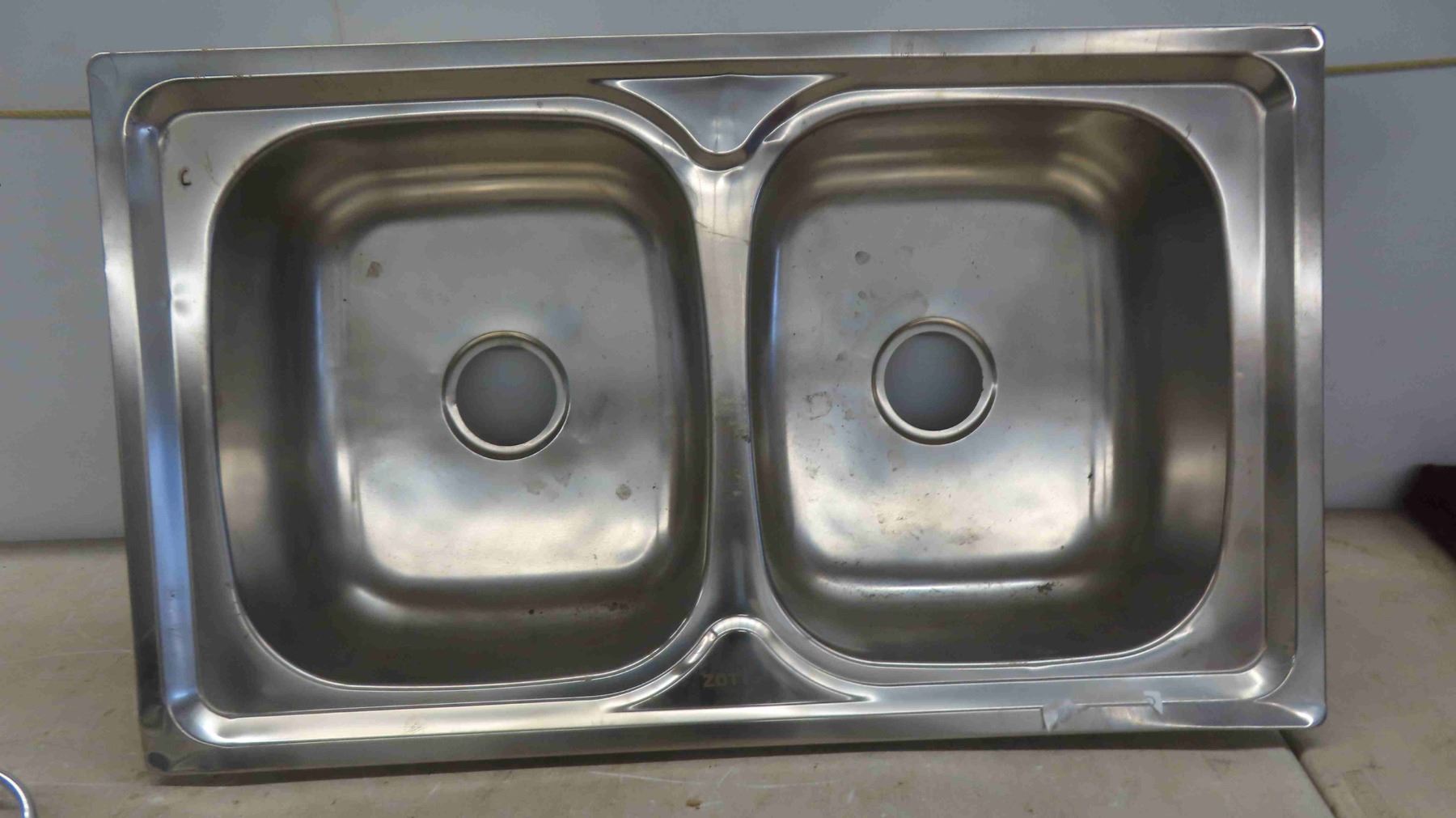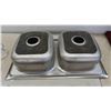 Double Stainless Steel Sink 33 1/2'' x 19 3/4'' x 7 3/4'' with Brushed Stainless Taps & 3 Towel Rings