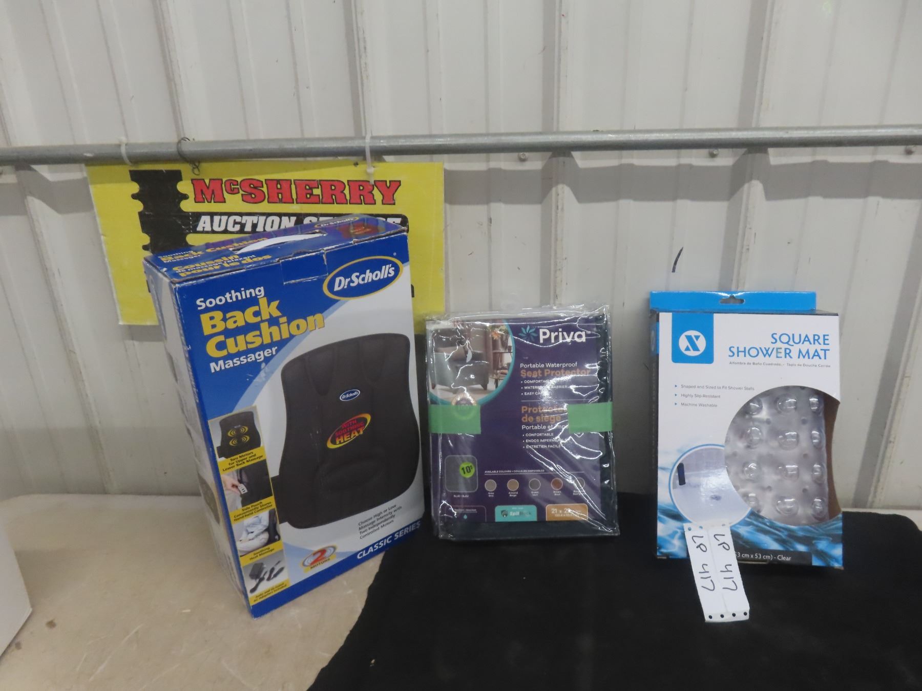 Dr. Scholls Back Cushion Massager, Square Shower Mat, 2 Priva Seat Protectors All New In Box