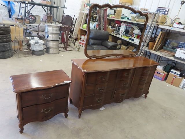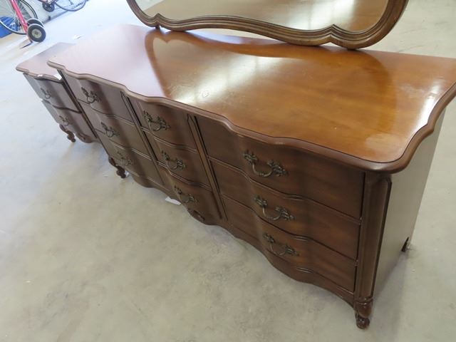 Dresser w Mirror & Nite Table - 31"H 65"W 18"D Plus Mirror 50" X 39" , Dresser hasa chip - Shown in