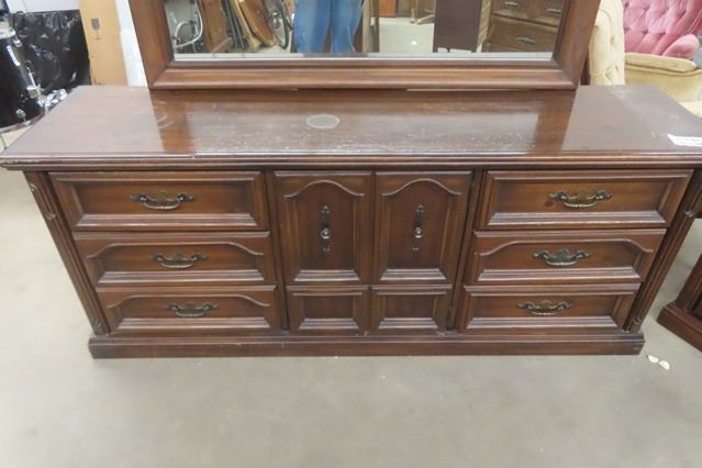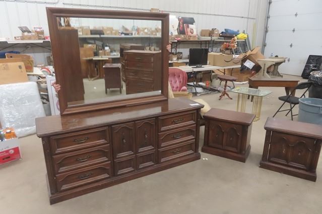 Dresser with Mirror 19"×25"×71" + Mirror 42"×52" & 2 Matching Night Tables 16"×21"×24"