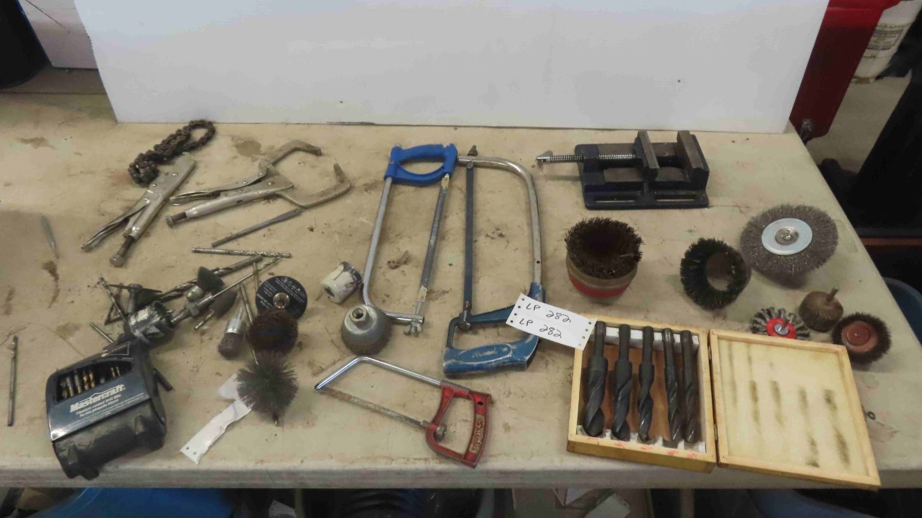 Drill Bits, Wire Wheel, Hack Saw, Vice Grips, Drill Press Vice, Plus