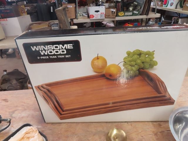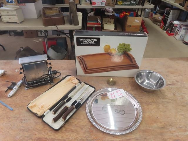 Drop Side Toaster, Carving Set , 3 pc Teak Tray Set plus more